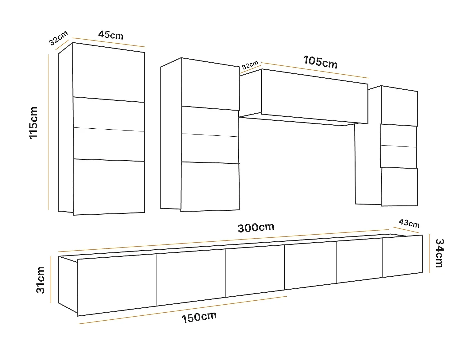 Woonwand Montreal IV - Zwart & Wit Hoogglans - Zonder LED