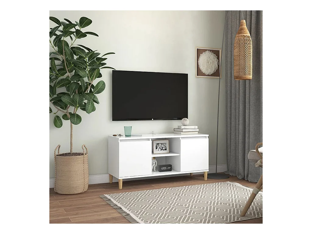 Xara Tv-meubel met massief houten poten 103,5x35x50 cm wit