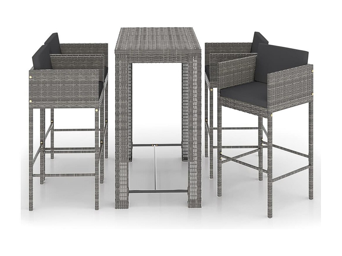Xerid 5-delige Tuinbarset met kussens poly rattan grijs