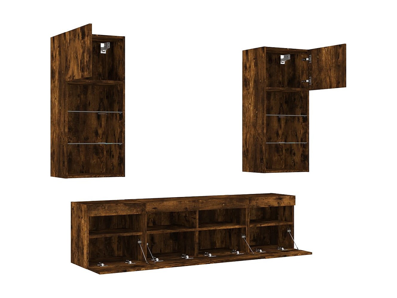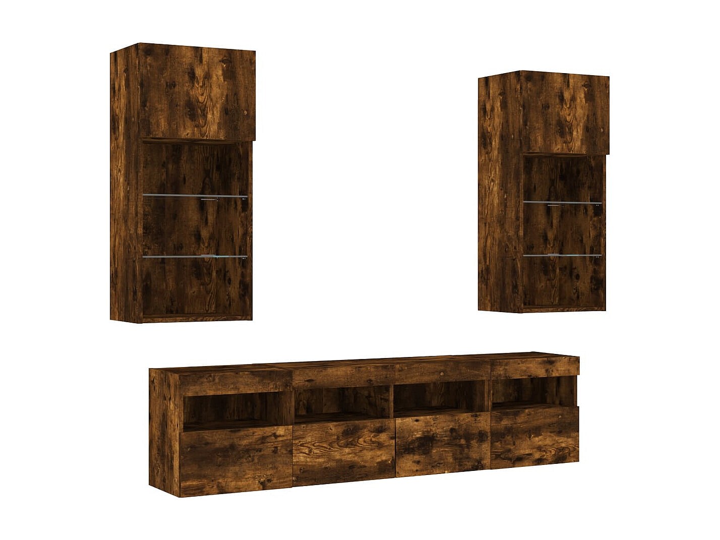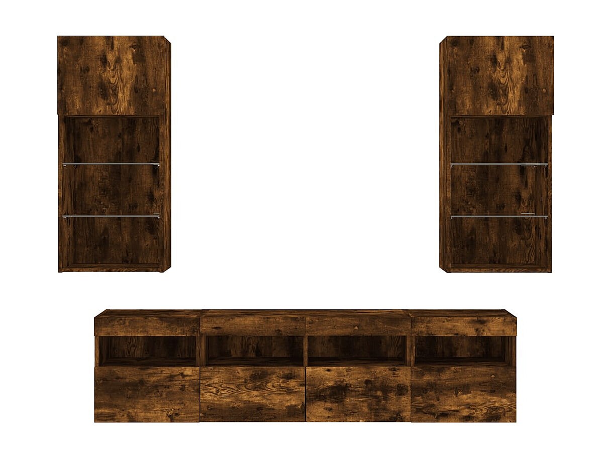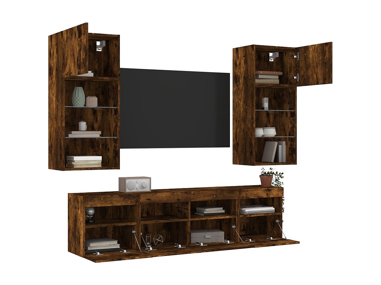 Xorlin 5-delige tv-wandmeubelset met LED bewerkt hout gerookt eiken