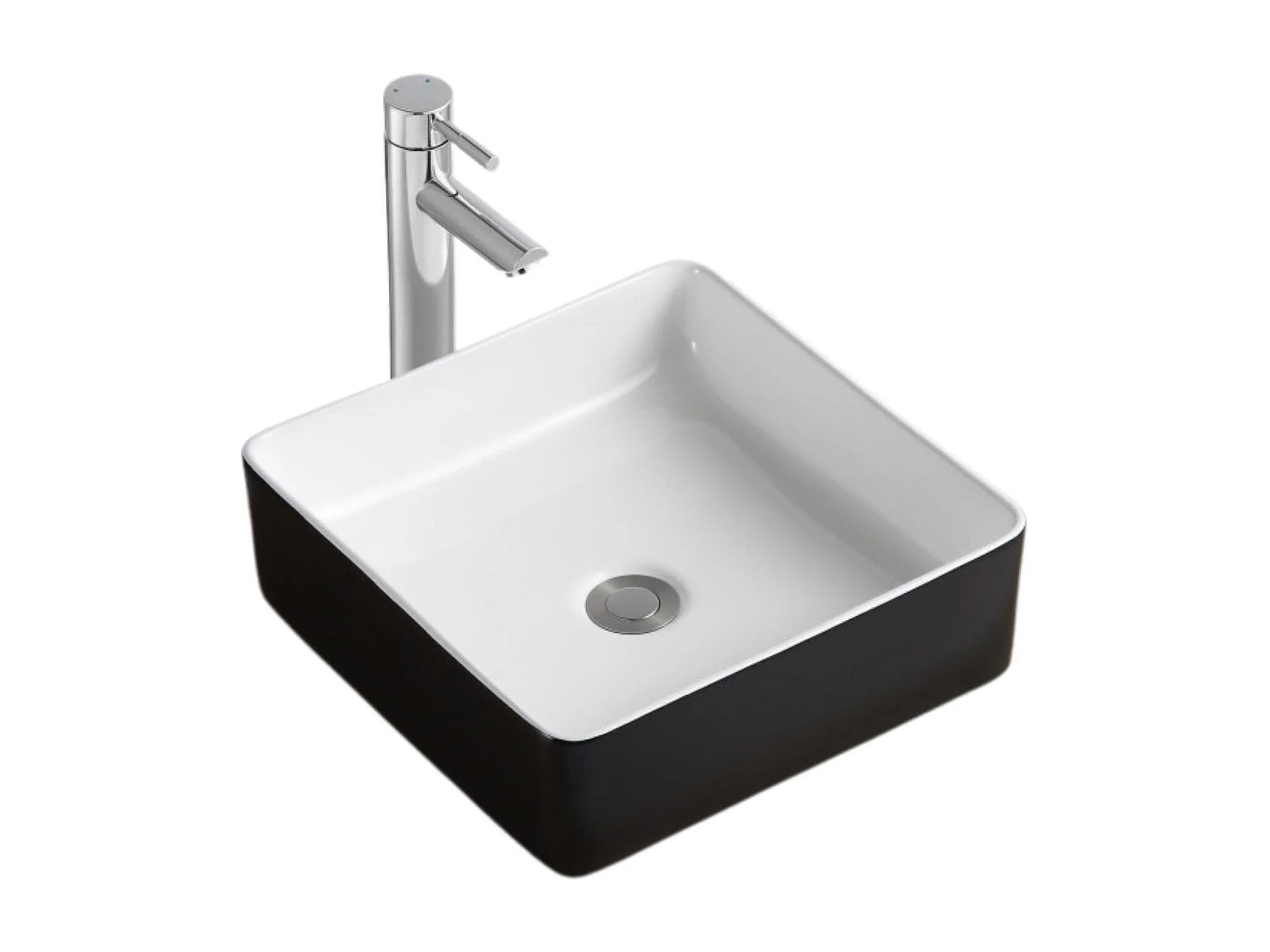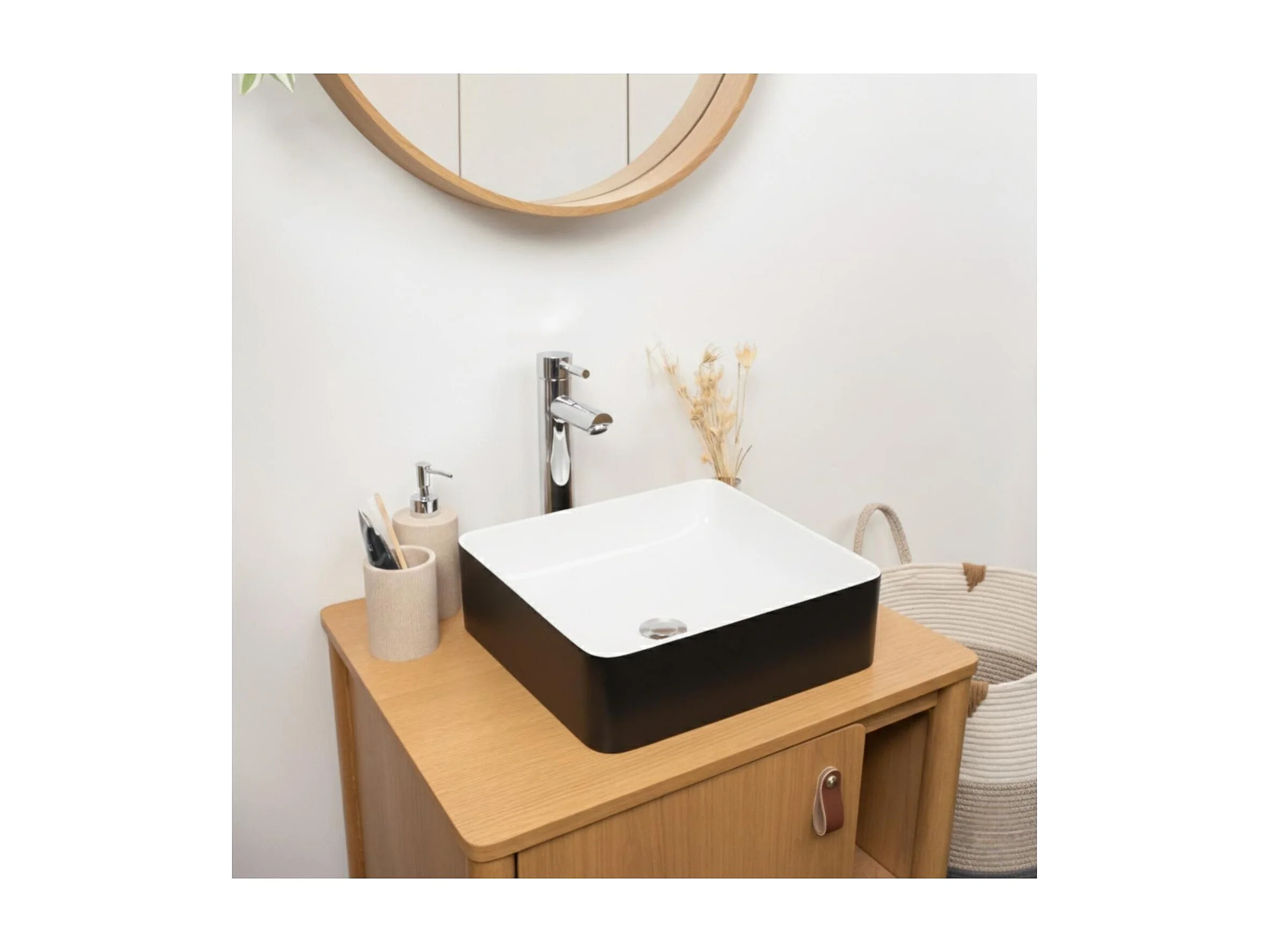 Vasque à poser carrée en céramique bicolore noir et blanc 36cm
