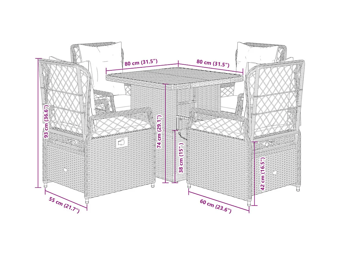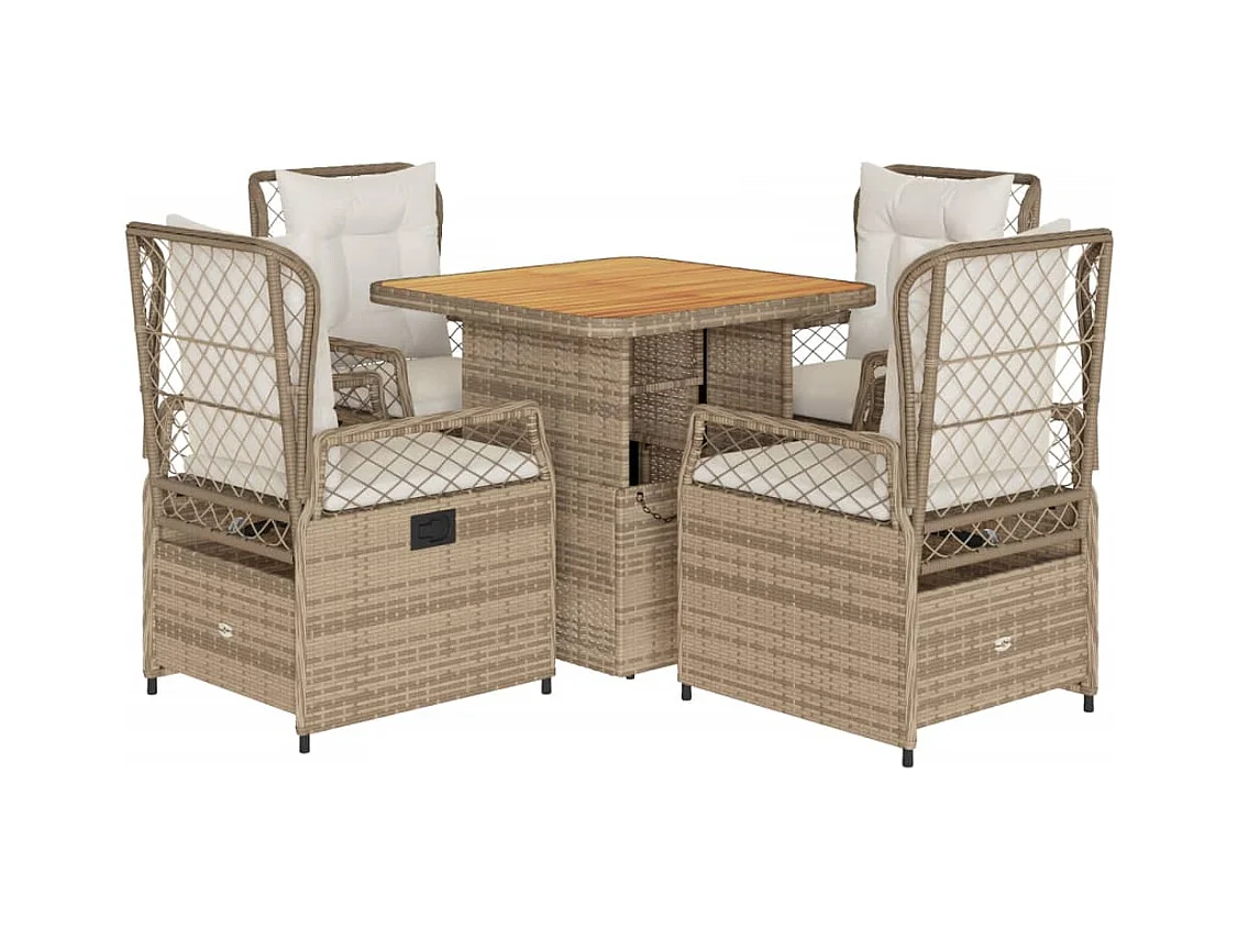 Necati 5-delige Tuinset met kussens poly rattan beige