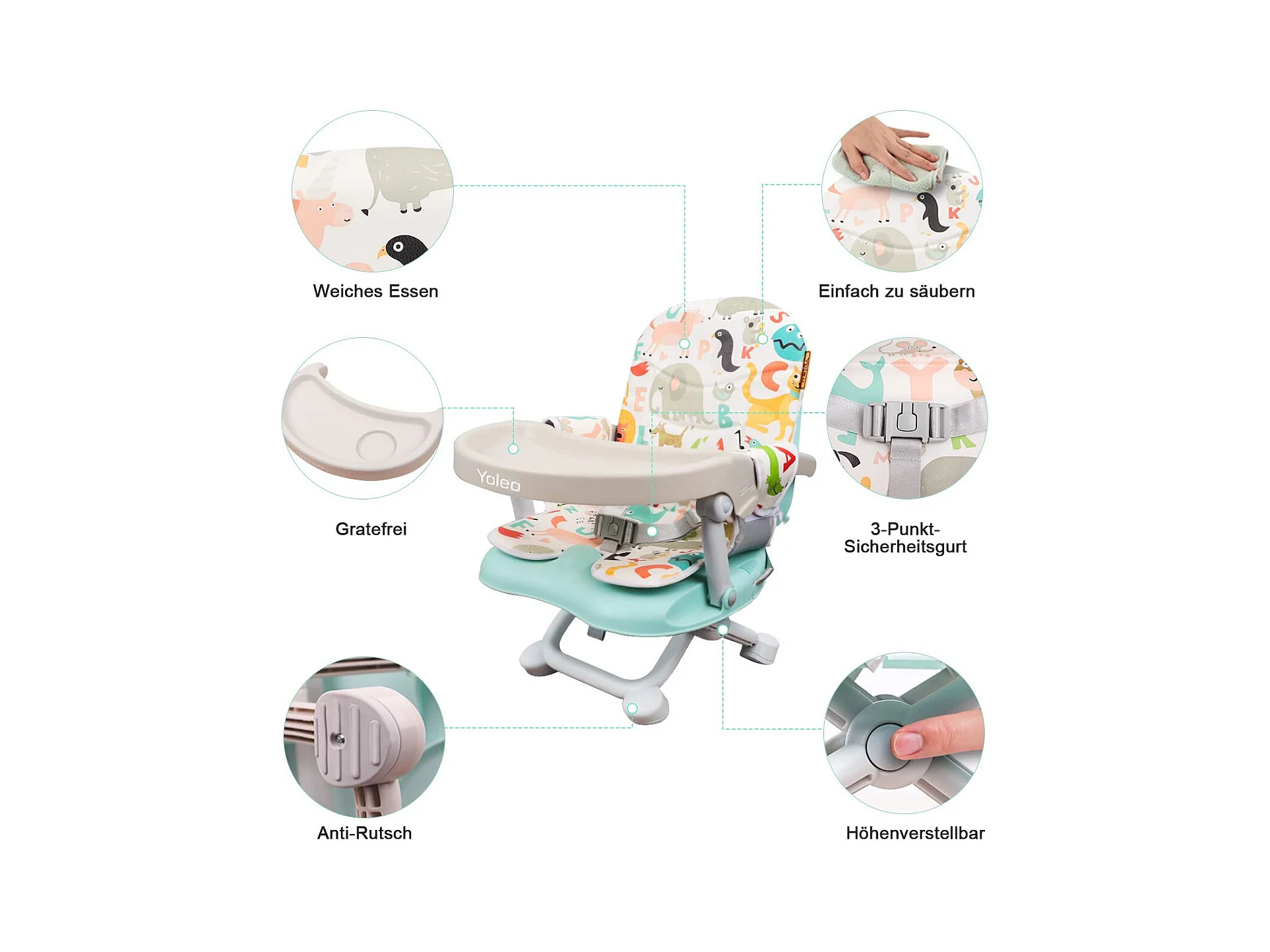 YOLEO Draagbare Kinderstoel voor baby's, Zitverhoger met veiligheidsgordel en verwijderbaar dienblad, Geschikt voor kinderen van 6 tot 36 maanden