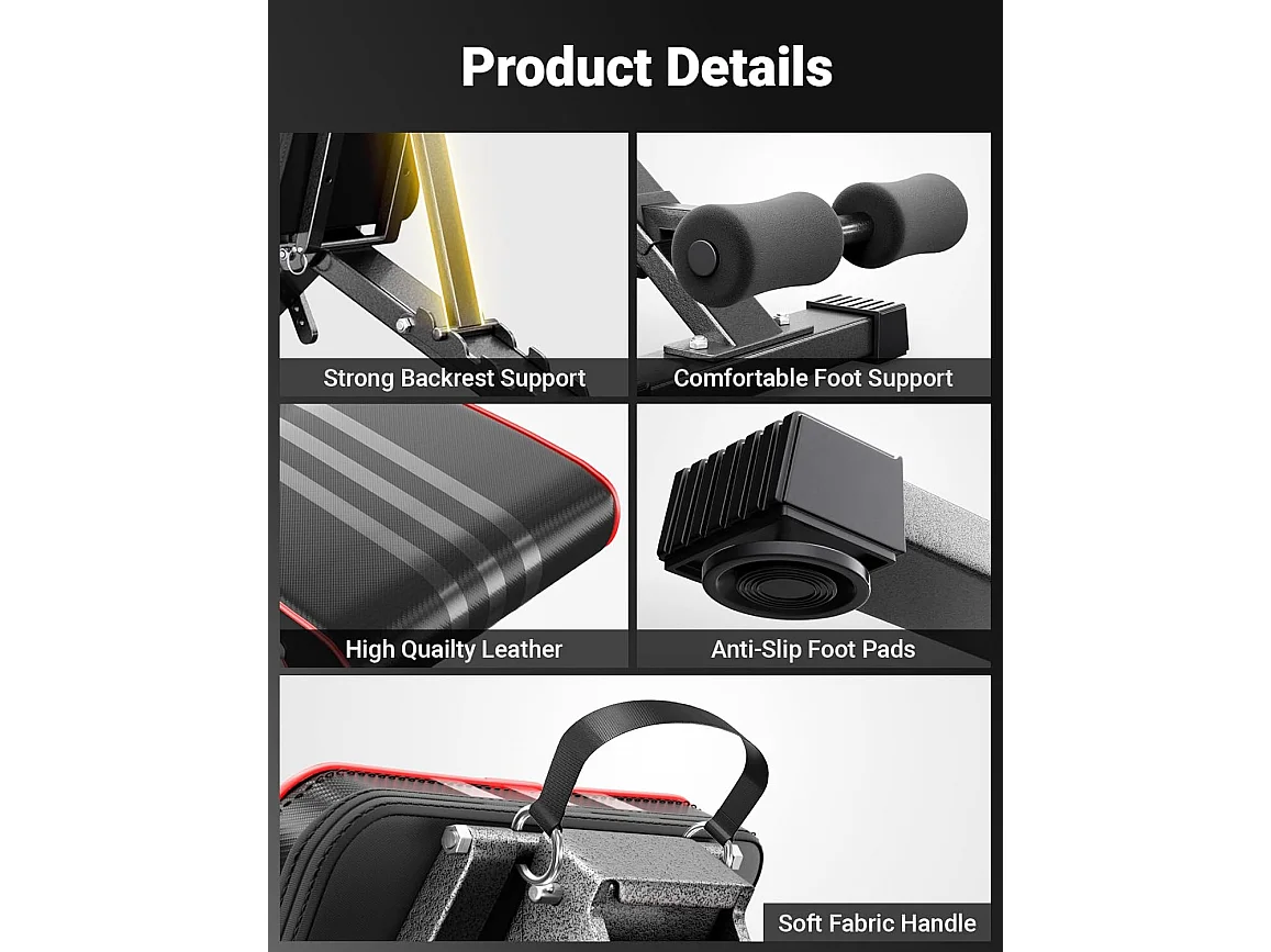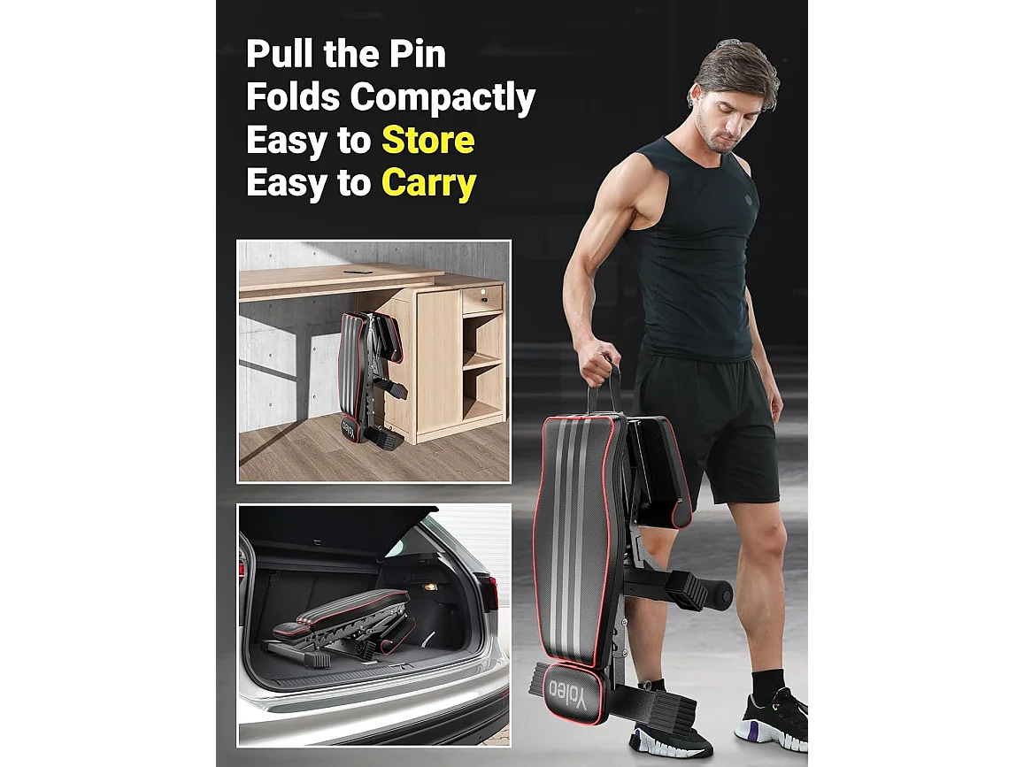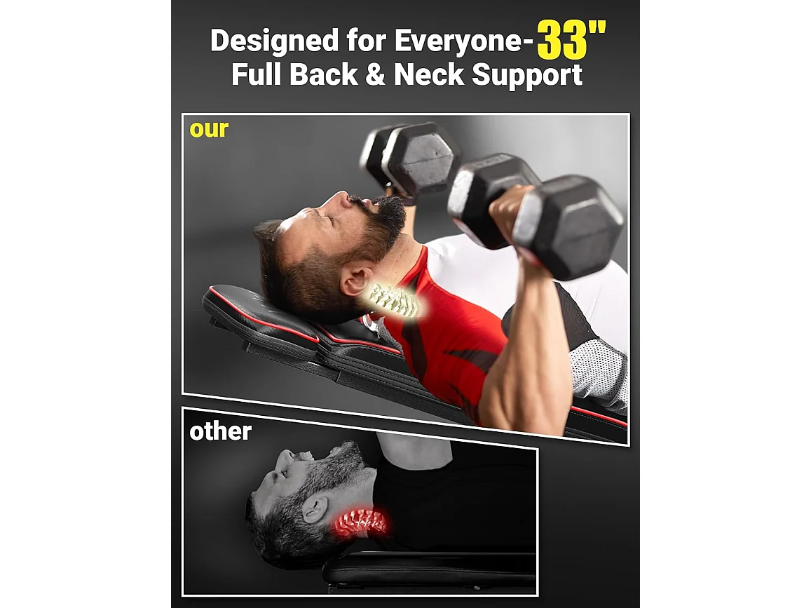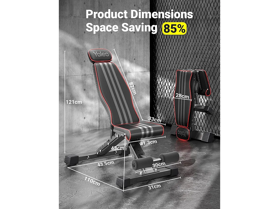 YOLEO Opvouwbare Gewichtbank Multifunctioneel met Verlengde Rugleuning en Hoofd/Wervelkolom Ondersteuning, Fitness Trainingsbank met 10-weg Verstelbare Rugleuning
