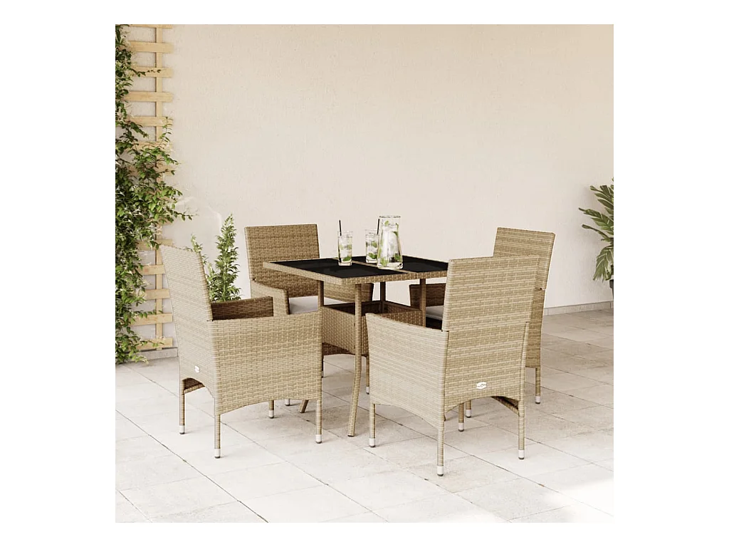 Yorba Linda 5-delige Tuinset met kussens poly rattan en glas beige