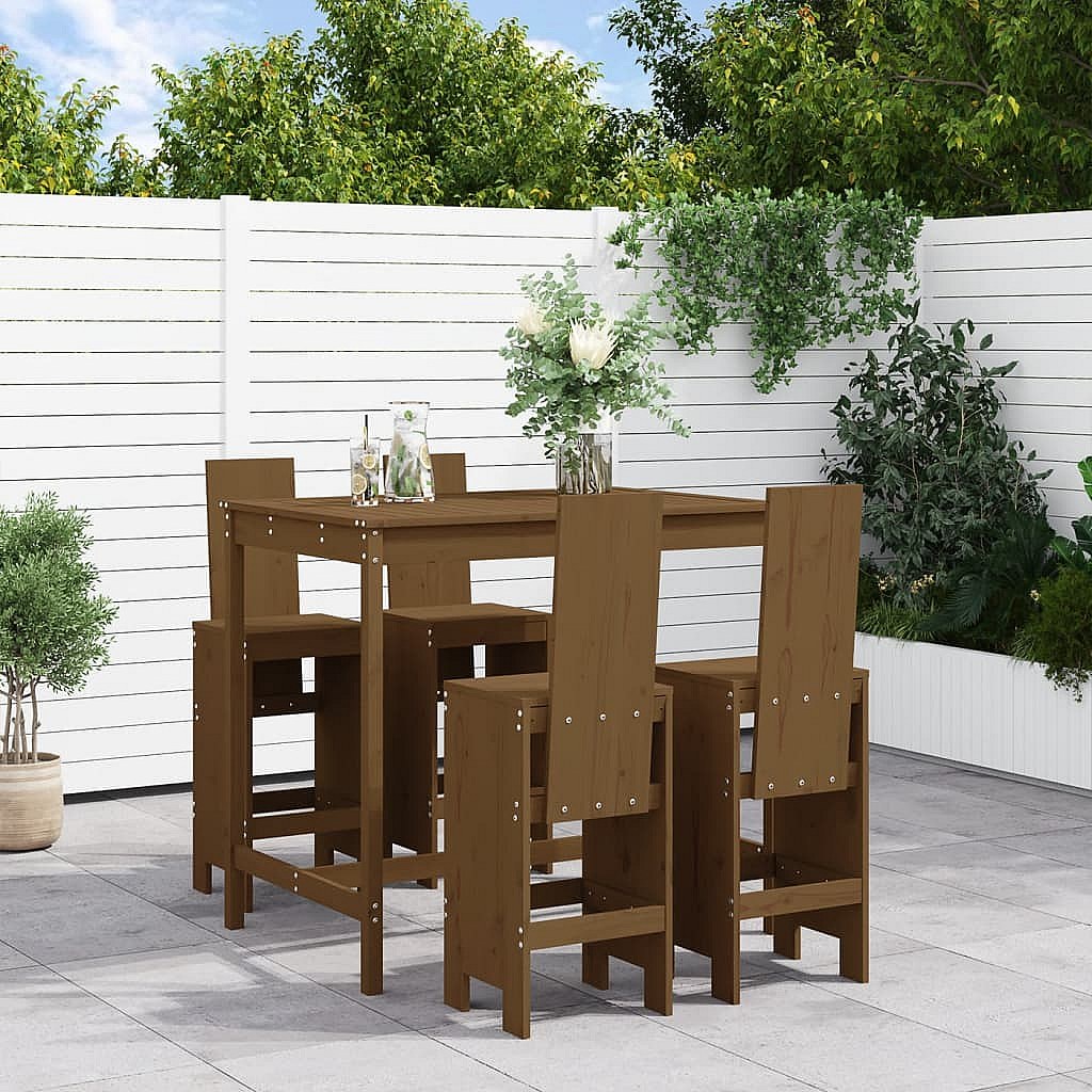 Erlin 5-delige Tuinbarset massief grenenhout honingbruin