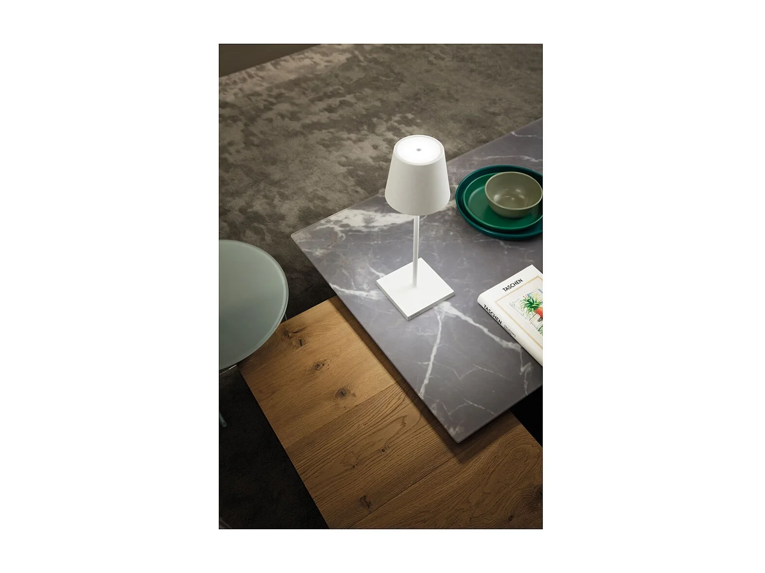 Zafferano Poldina L Bureau Corten LED tafellamp, oplaadbaar en dimbaar, met een batterijduur tot 12 uur