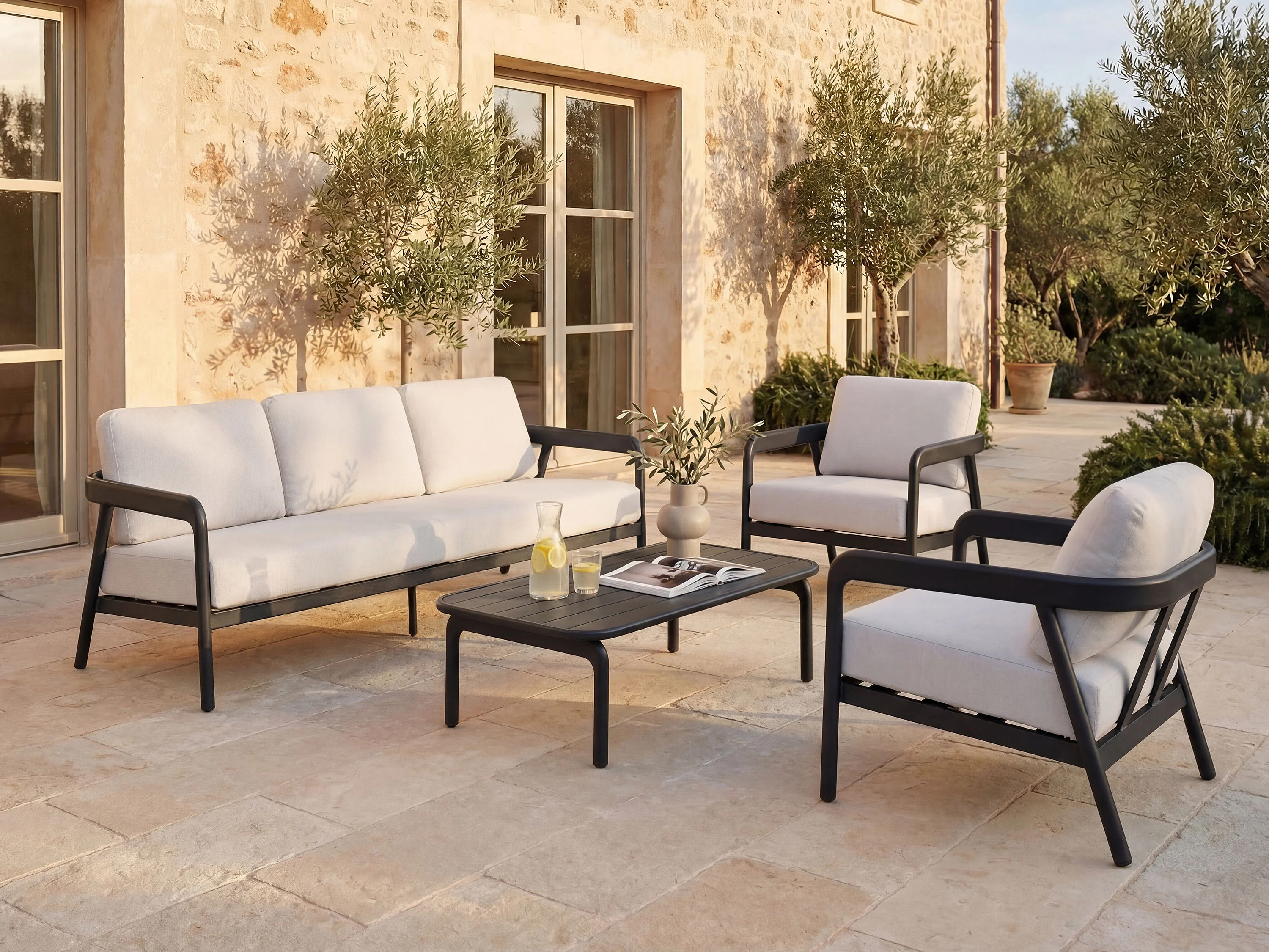 Aluminium tuinset: een 3-zitsbank, 2 stoelen en een salontafel - Donkergrijs - ZAYORA van MYLIA
