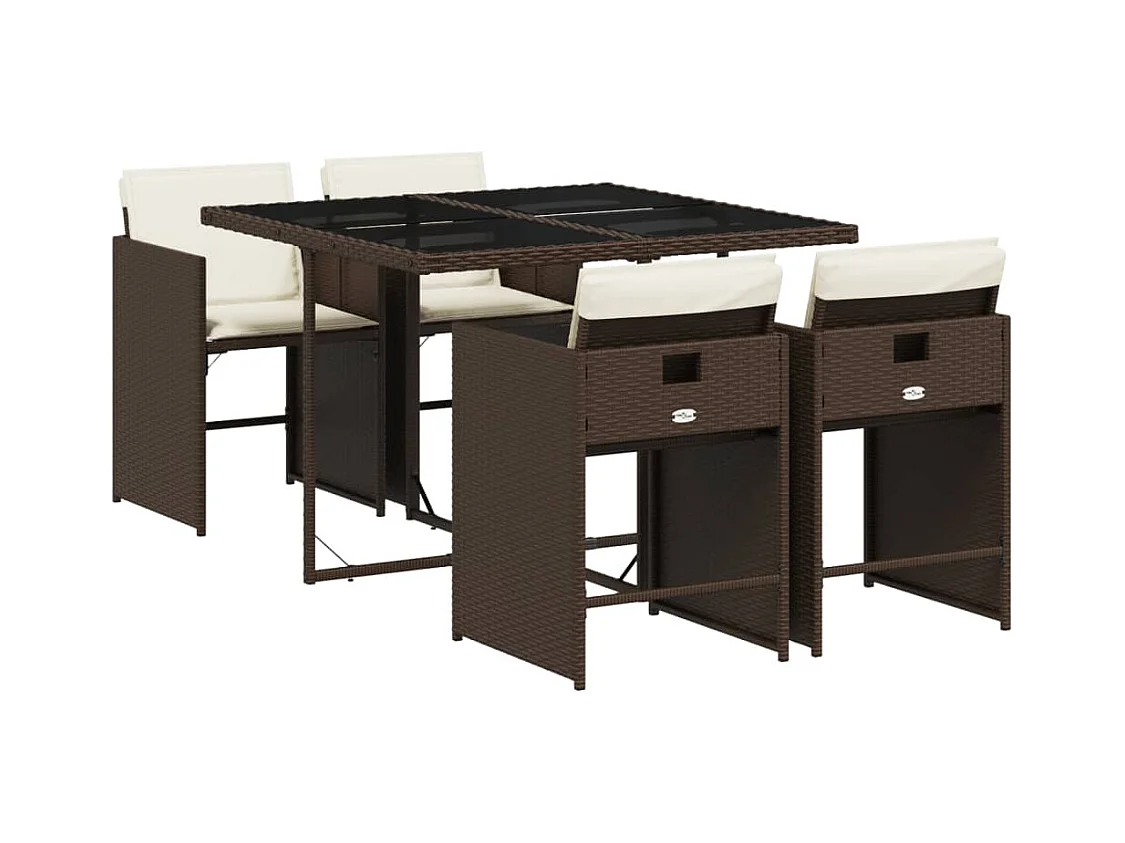 Jeffersontown 5-delige Tuinset met kussens poly rattan bruin