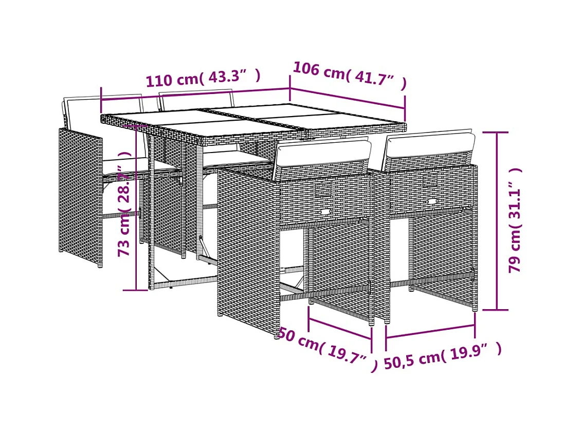 Zele 5-delige Tuinset met kussens poly rattan bruin