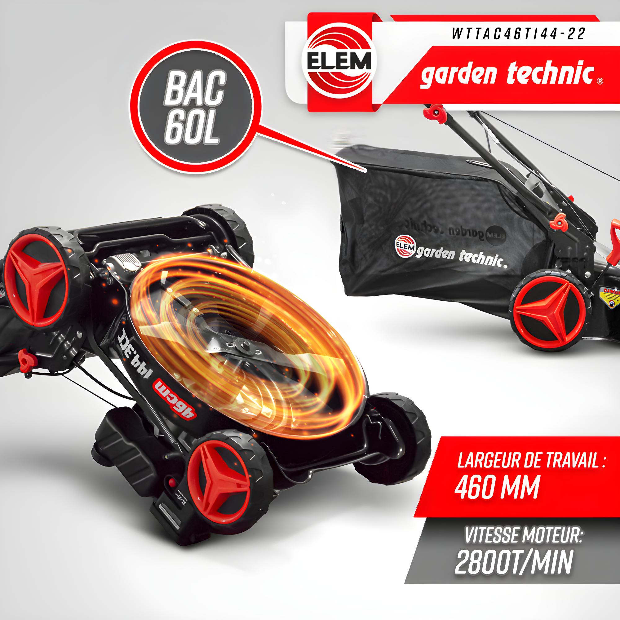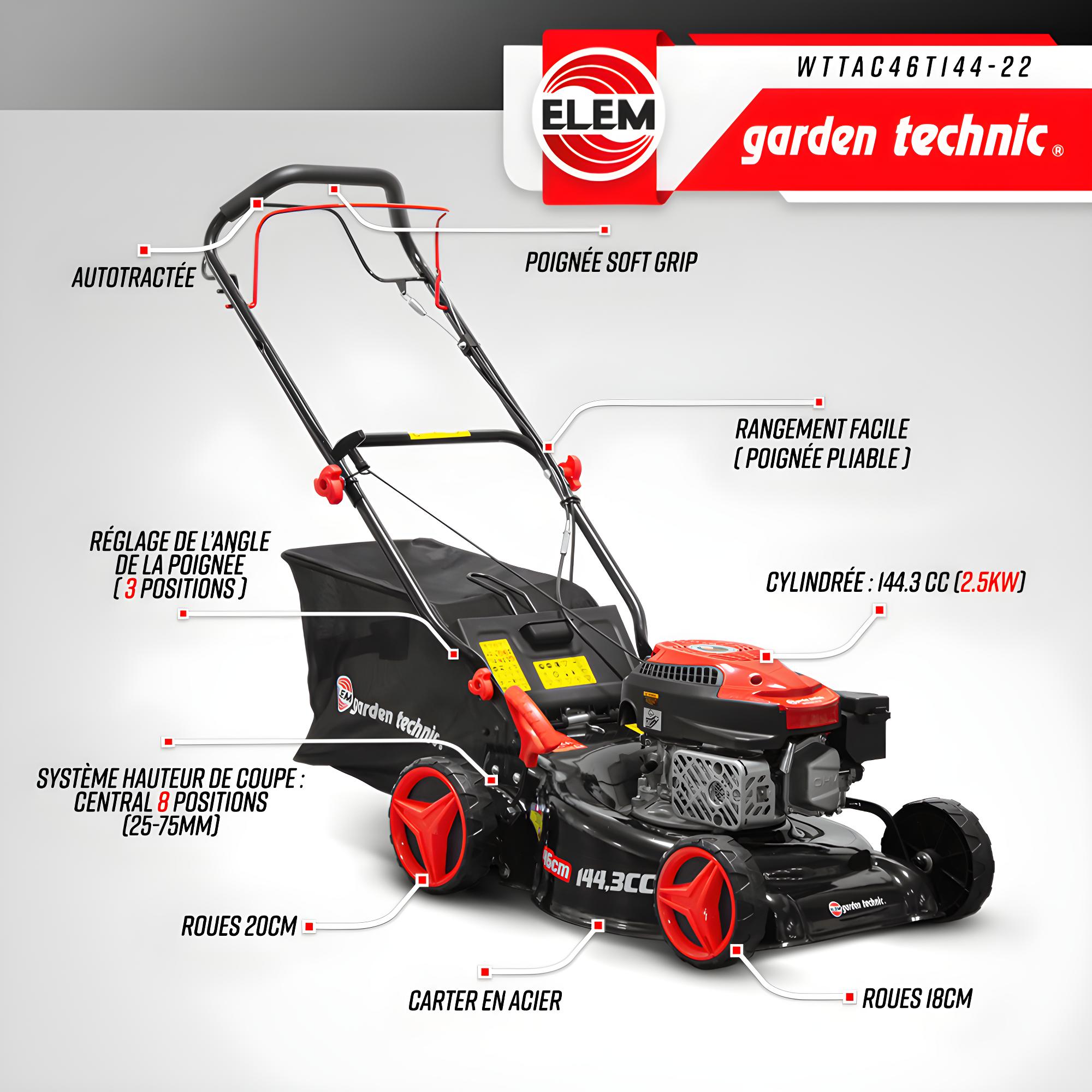 Deze zelfrijdende thermische grasmaaier 144.3CC is ideaal voor het maaien van een groot terrein. Dankzij een maaibreedte van 46 cm en een opvangbak van 60 liter kunt u snel grote oppervlakken maaien.