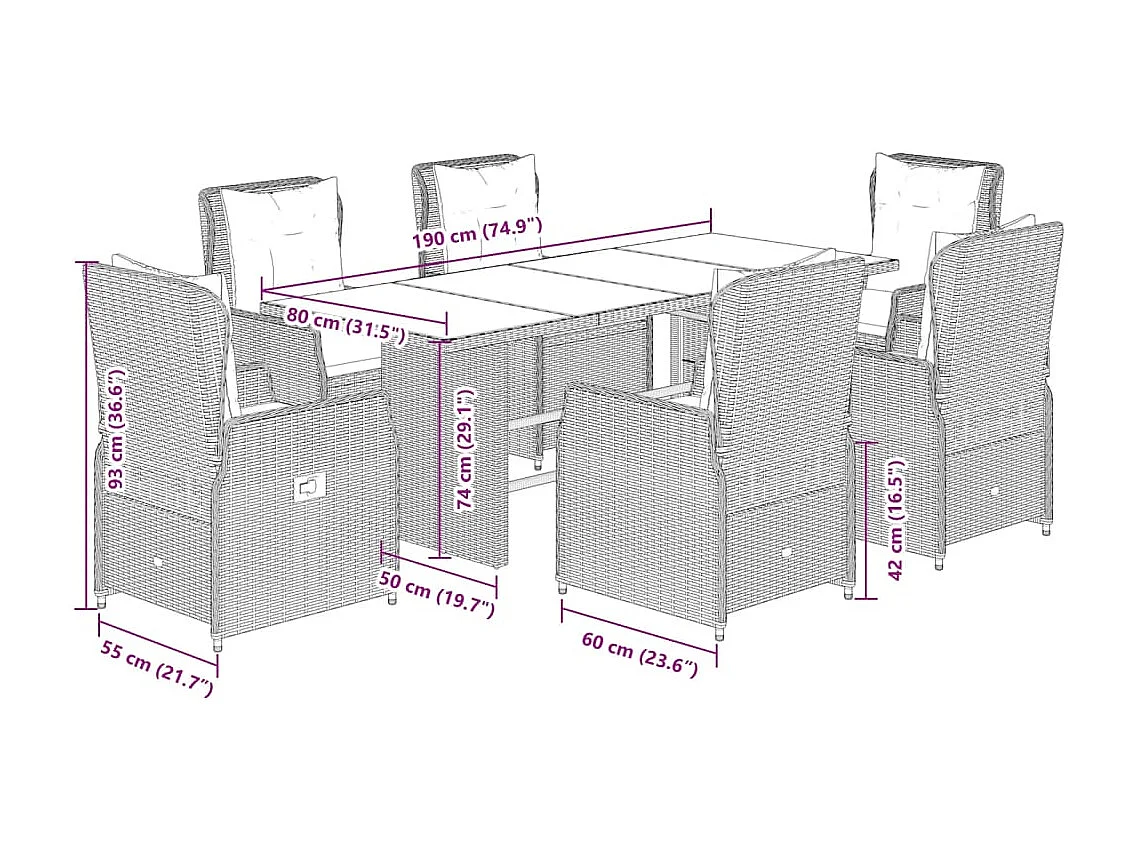 Zion 7-delige Tuinset met kussens poly rattan grijs