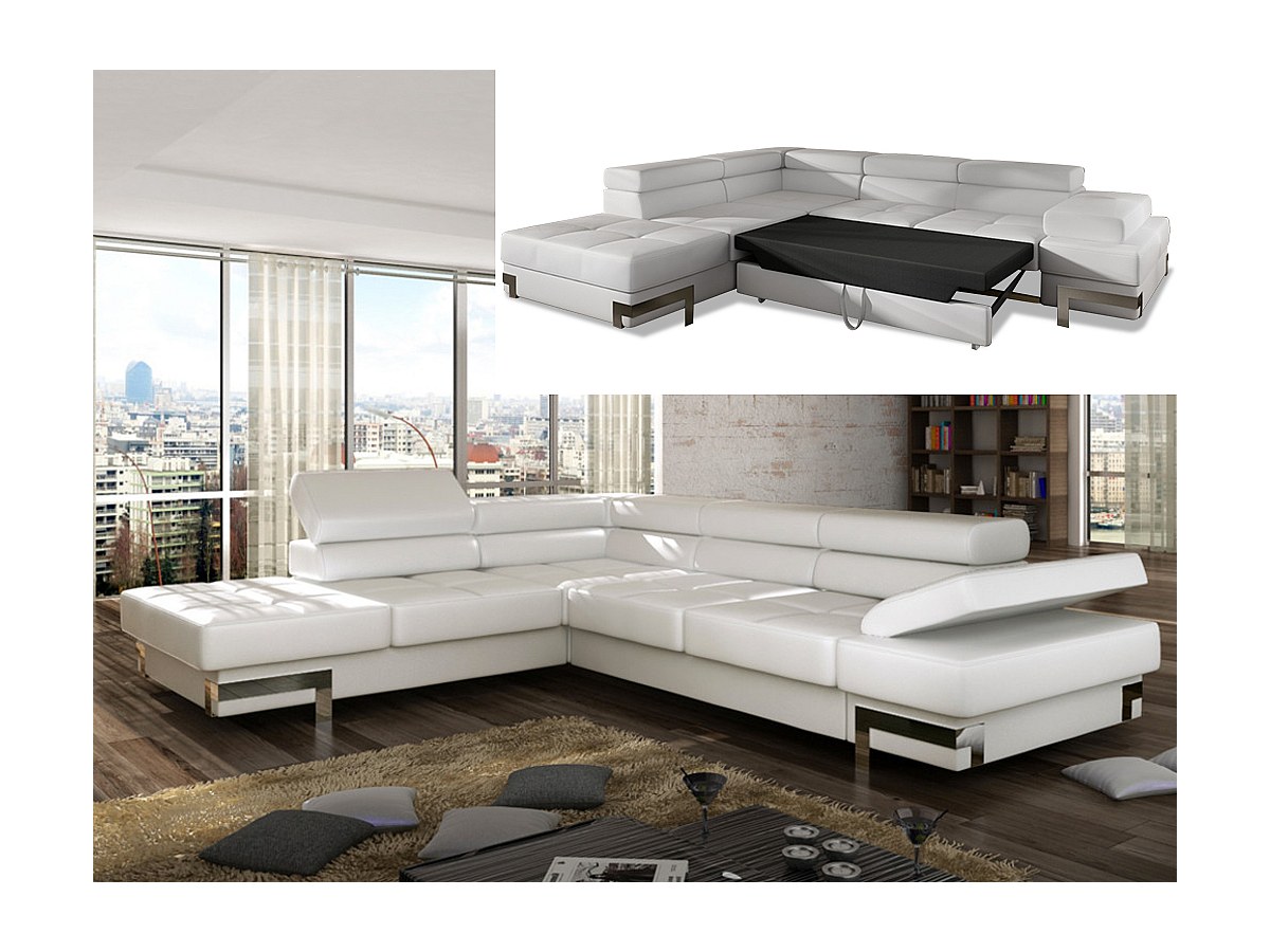 Hoekbedbank van kunstleer DAMIEN - Wit - Hoek links