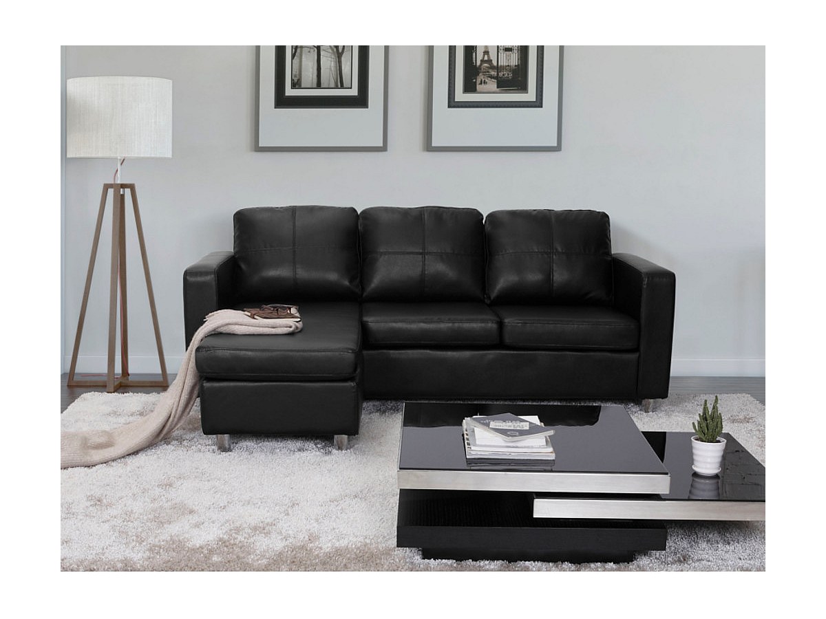 Hoekbank van kunstleer met hoek links of rechts ACKLEY - Zwart