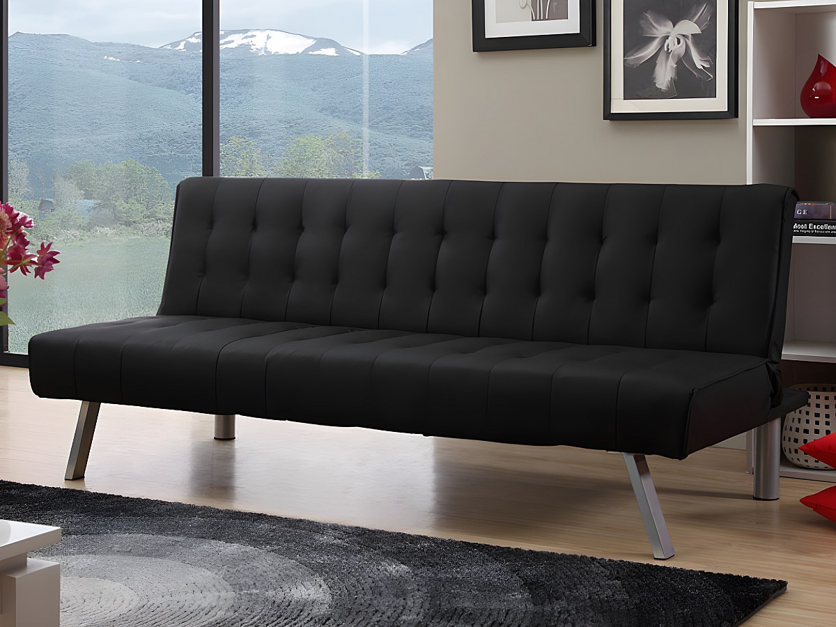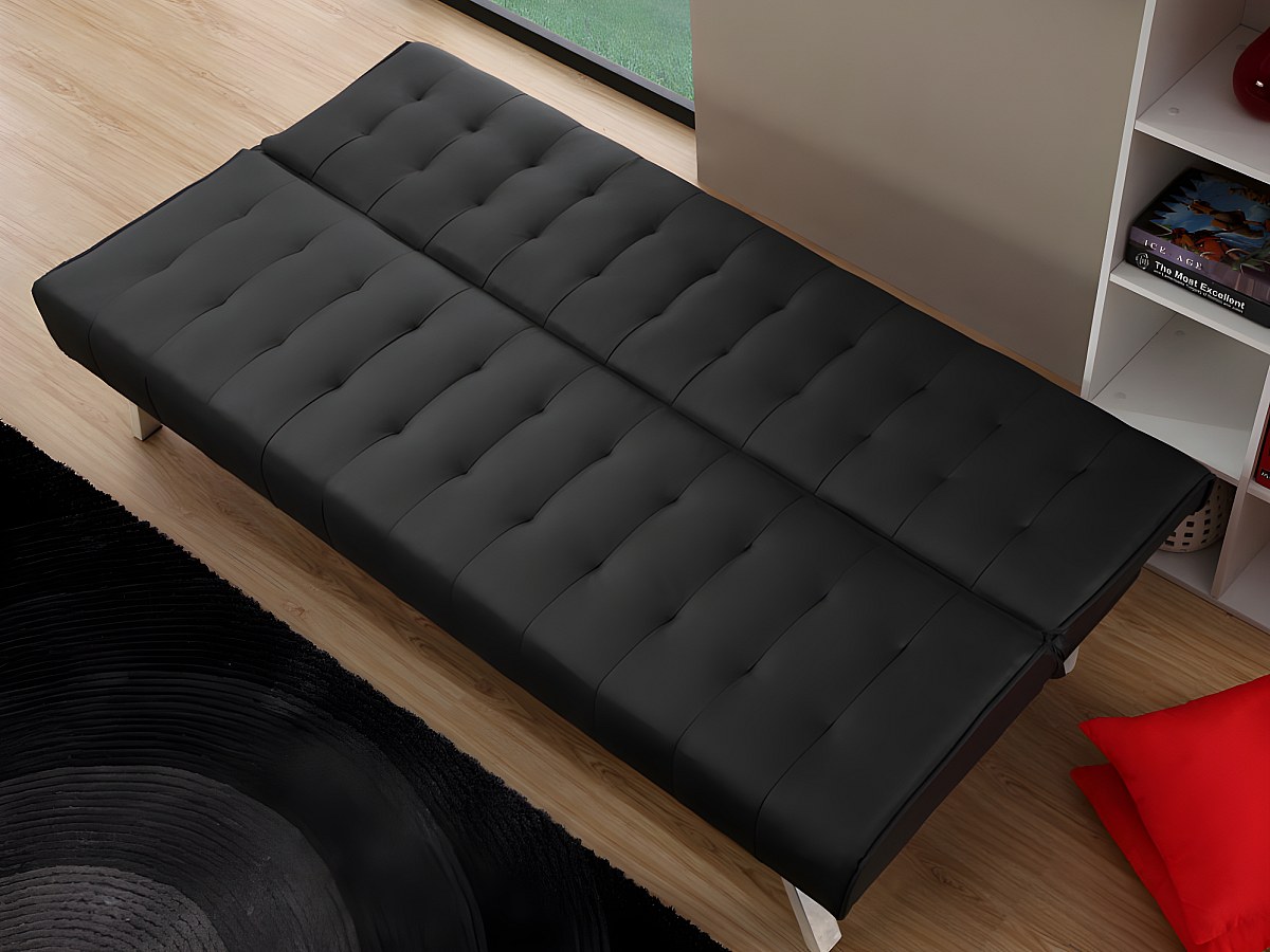 Klikklak-bedbank GUILLAUME van kunstleer - Zwart