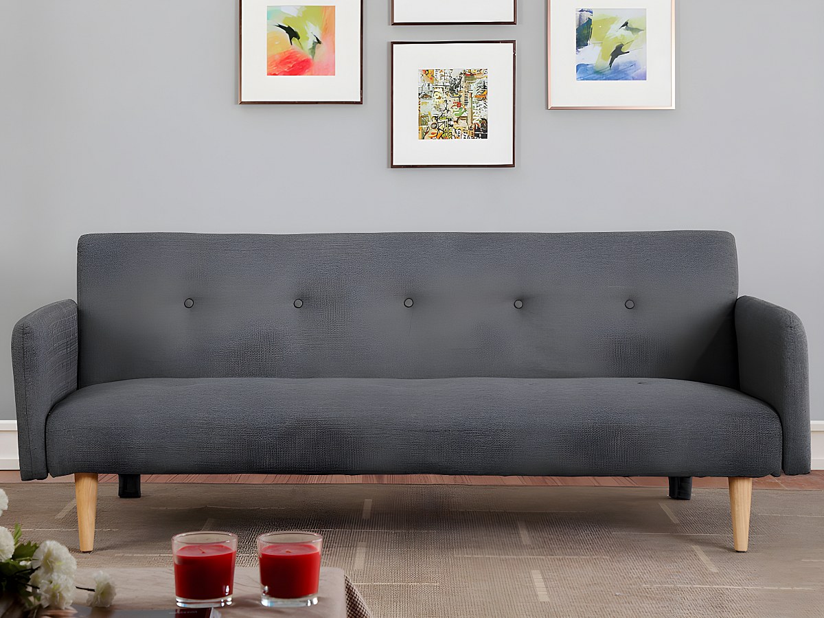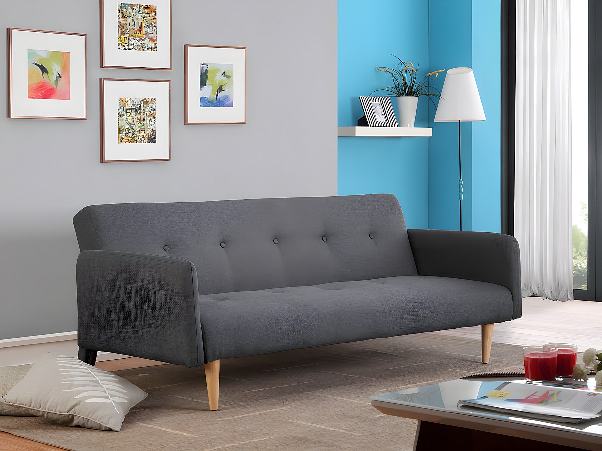Driezits bedbank van stof MAURICE - antraciet grijs