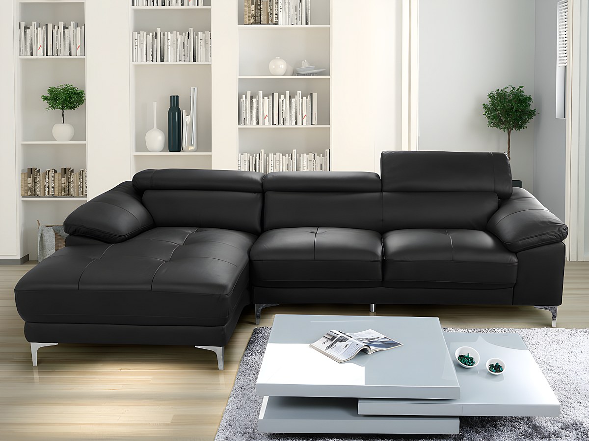 Leren hoekbank SOLANGE - Zwart - Hoek links