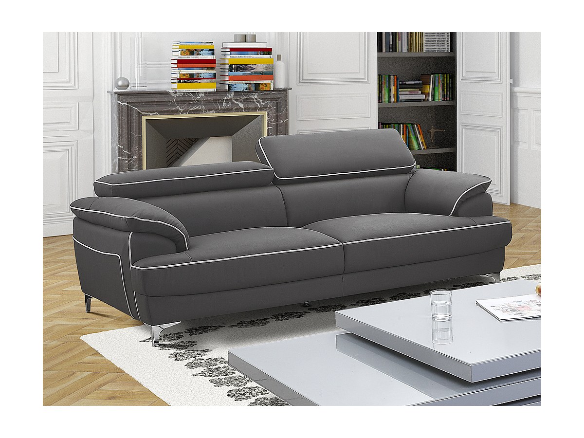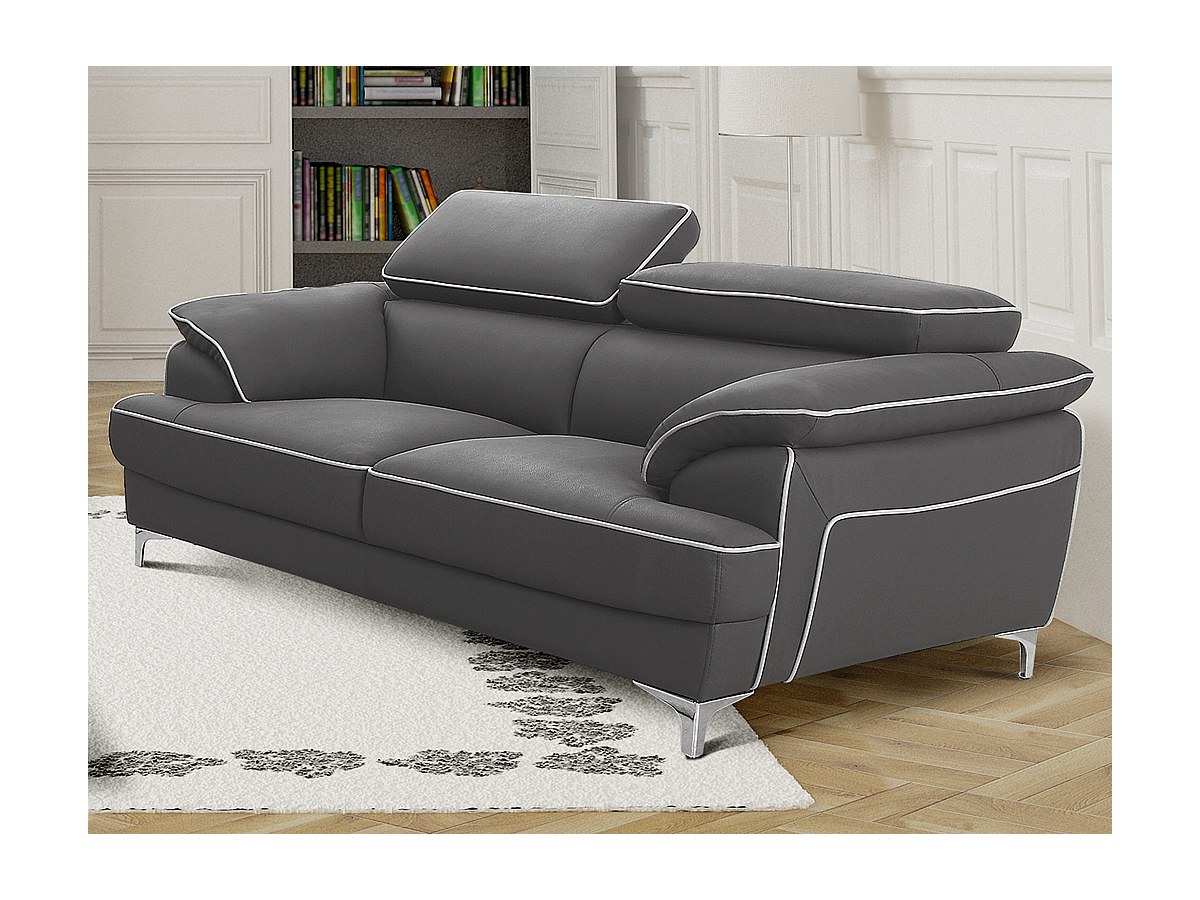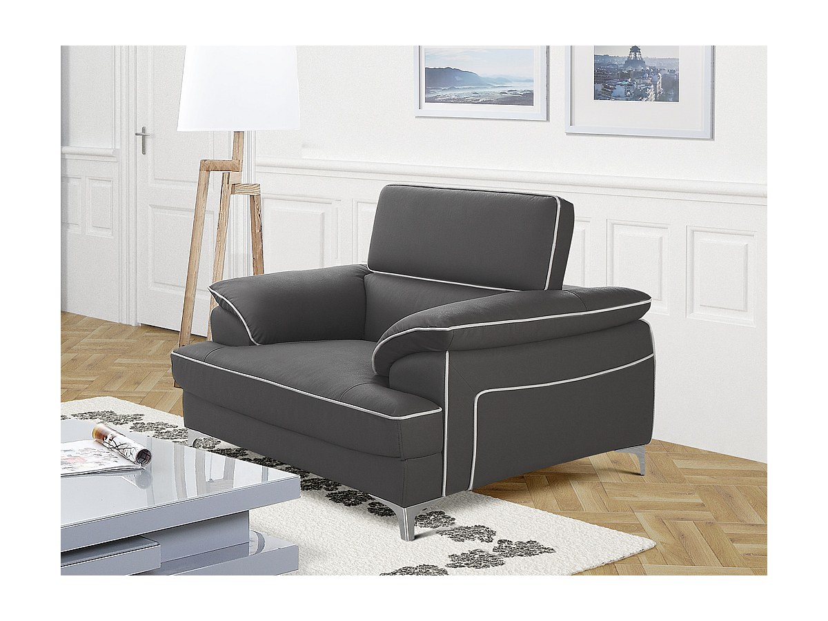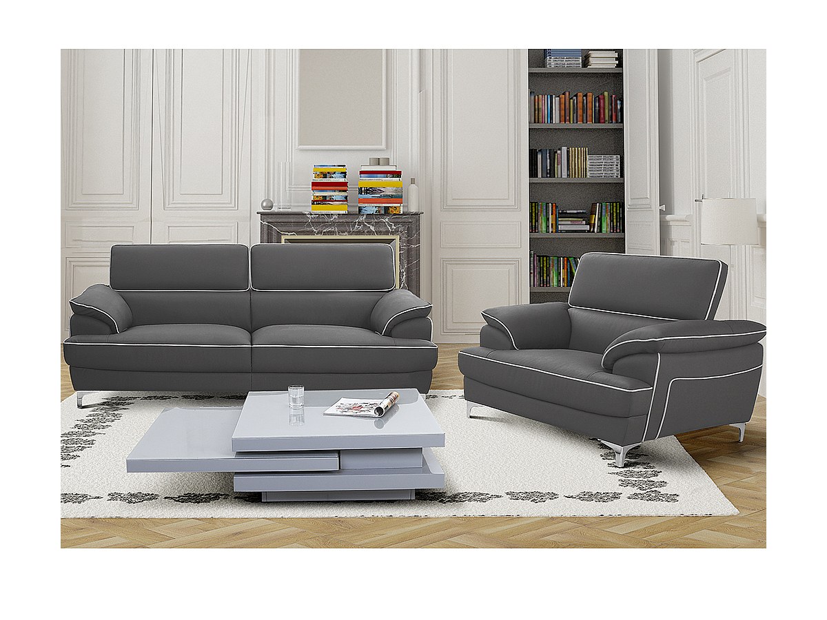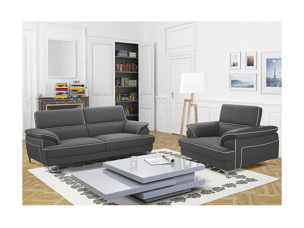 Driezitsbank en fauteuil van kunstleer VOLTAIRE - Taupe met lichtbeige paspel