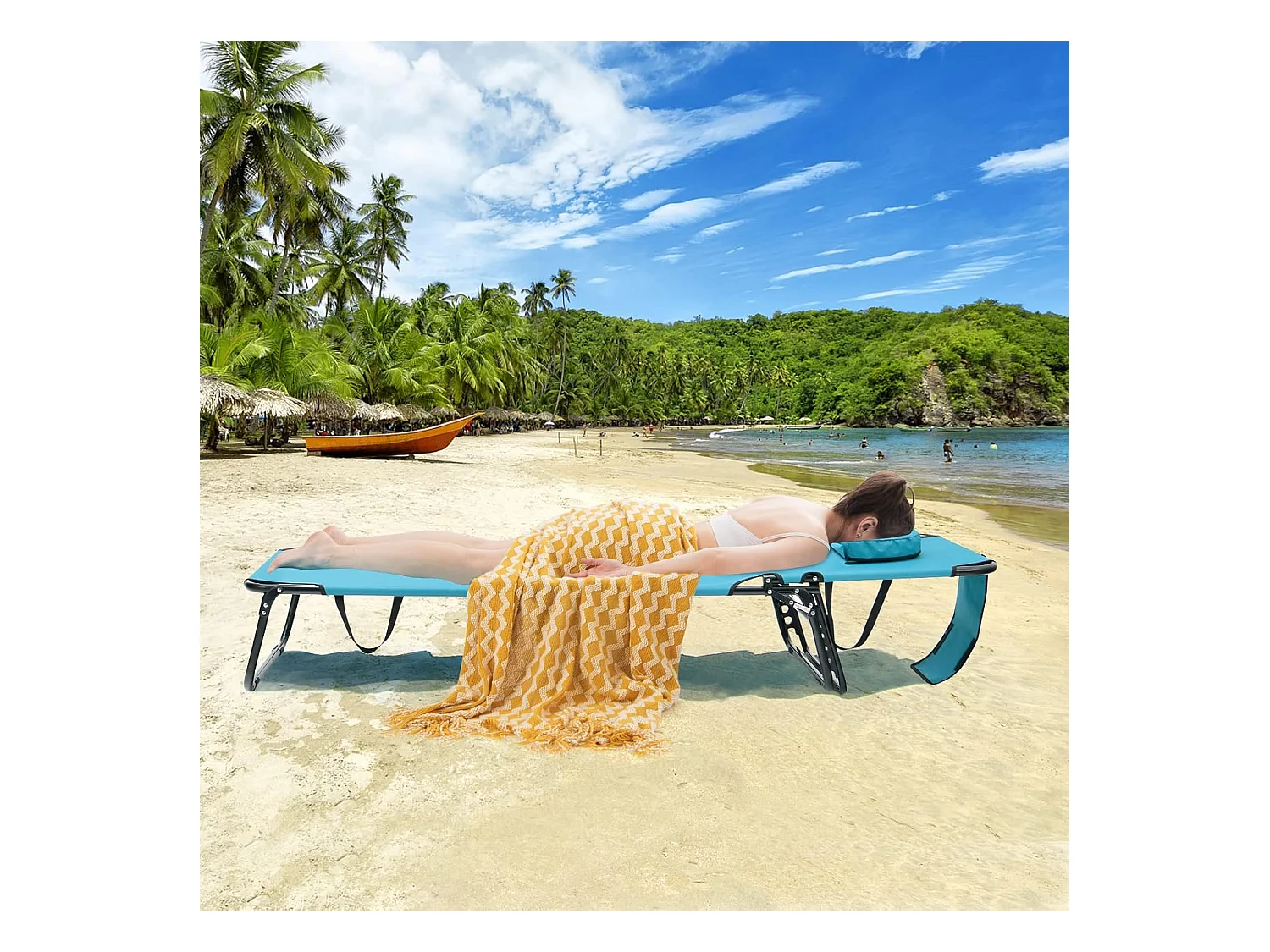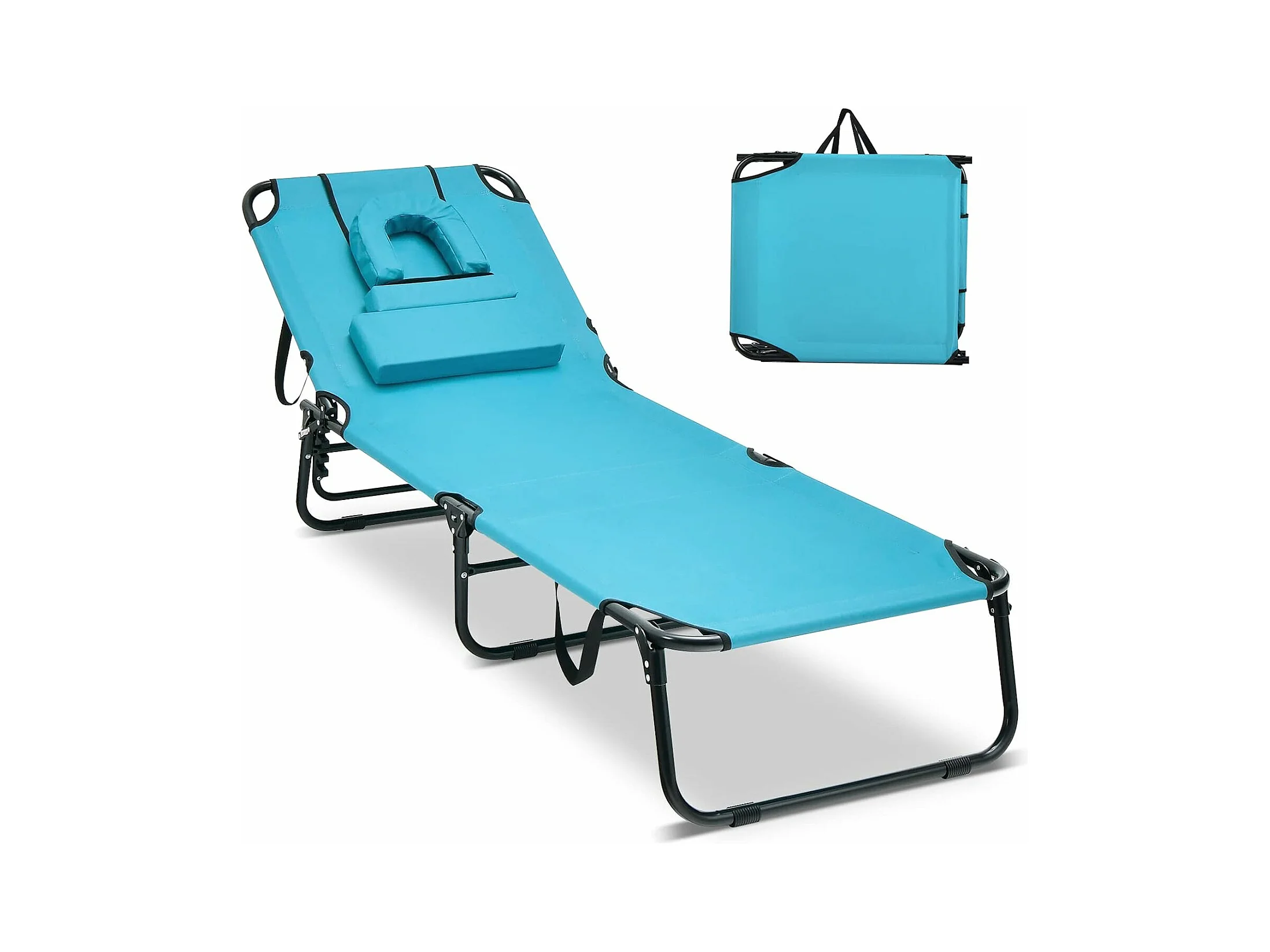 Zonneligstoel met gezichtsopening, inklapbare ligstoel en 5-voudig verstelbare rugleuning, strandstoel, ligstoel voor tuin en zwembad, turquoise ZB32169