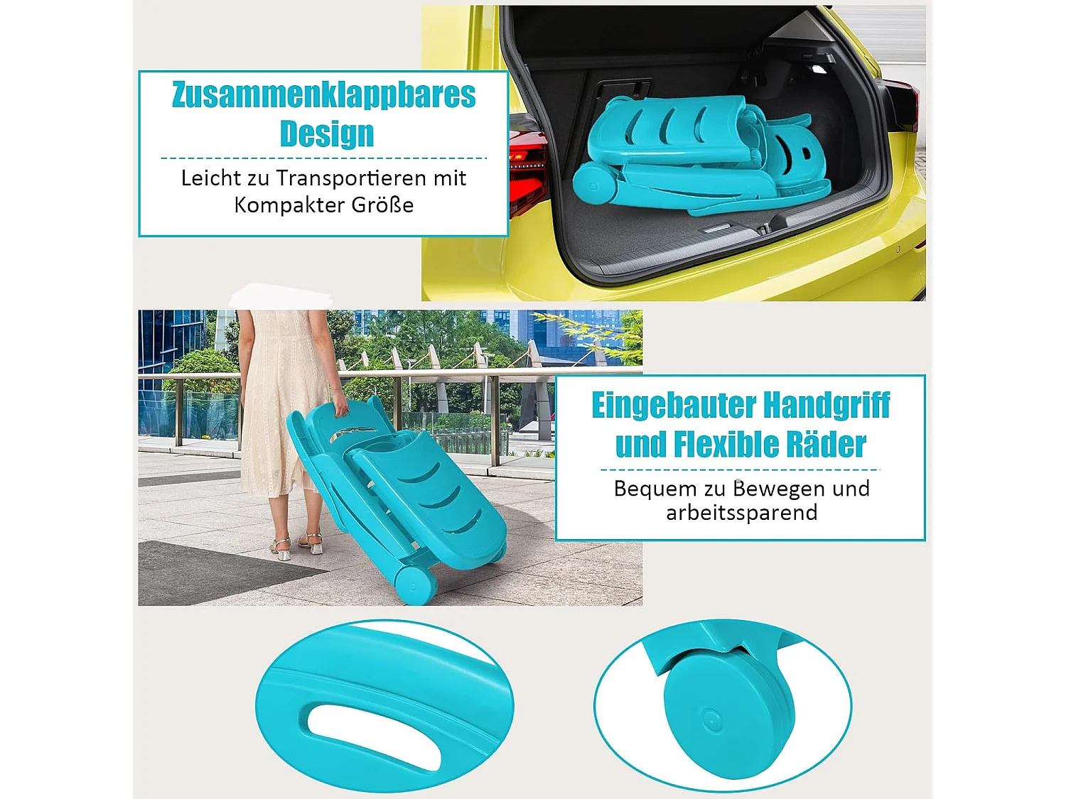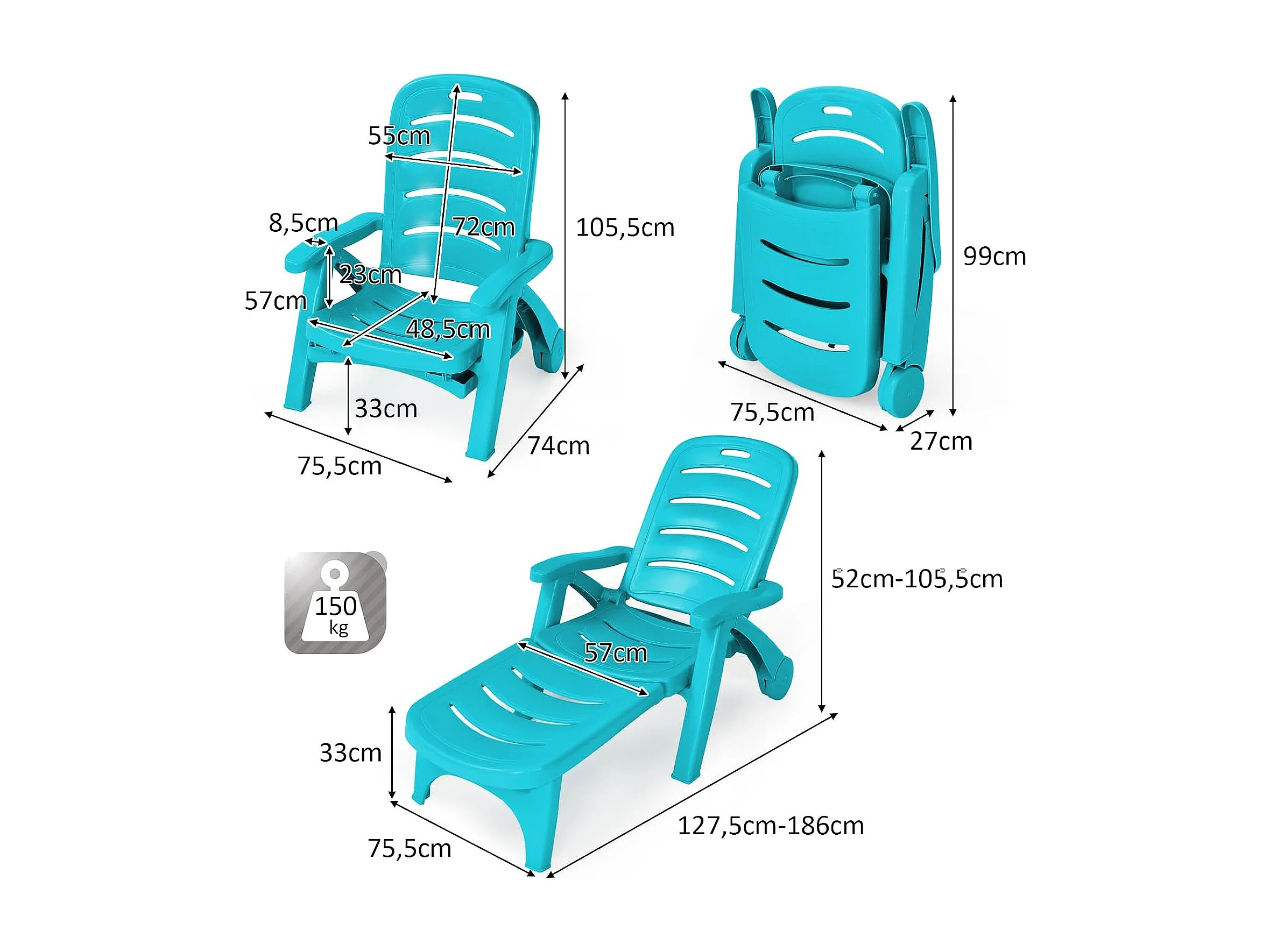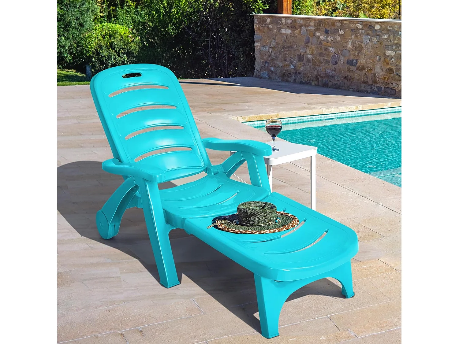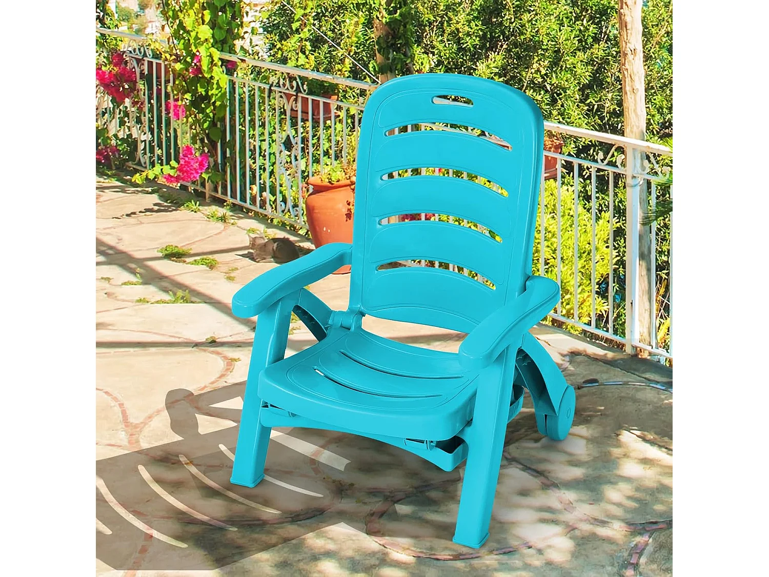 Zonneligstoel met wieltjes, ombouwbare tuinstoel, inklapbare ligstoel met 5-voudig verstelbare rugleuning, weerbestendige klapstoel voor terras, tuin ZB32031