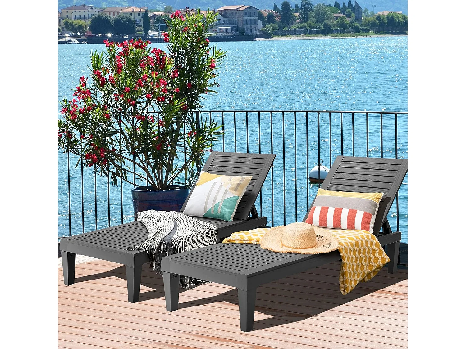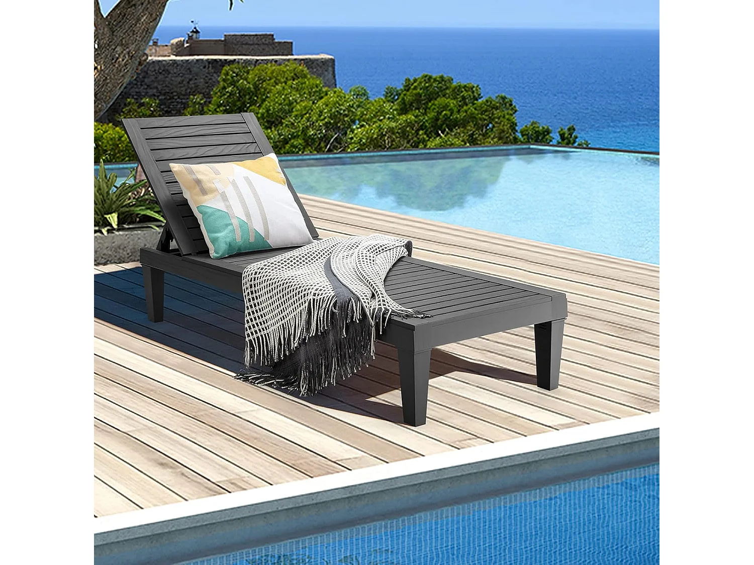 Zonneligstoel, weerbestendig, tuinligstoel met verstelbare rugleuning,balkonligstoel,terrasligstoel in houtlook,ligstoel tot 180 kg belastbaar