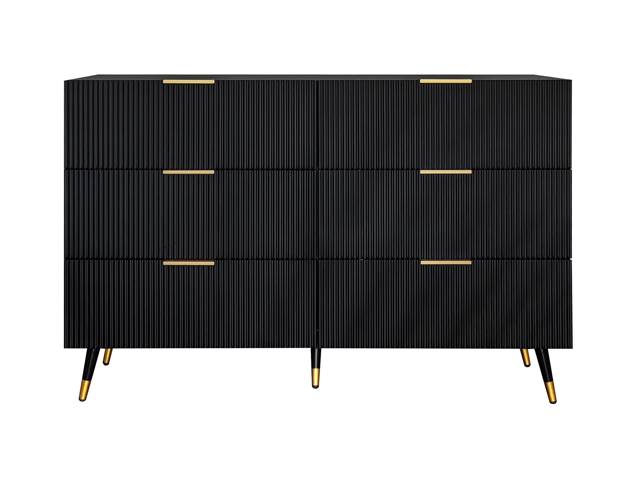 Zwart dressoir, elegant dressoir met 6 opberglades, gouden handgrepen, voor woonkamer en slaapkamer