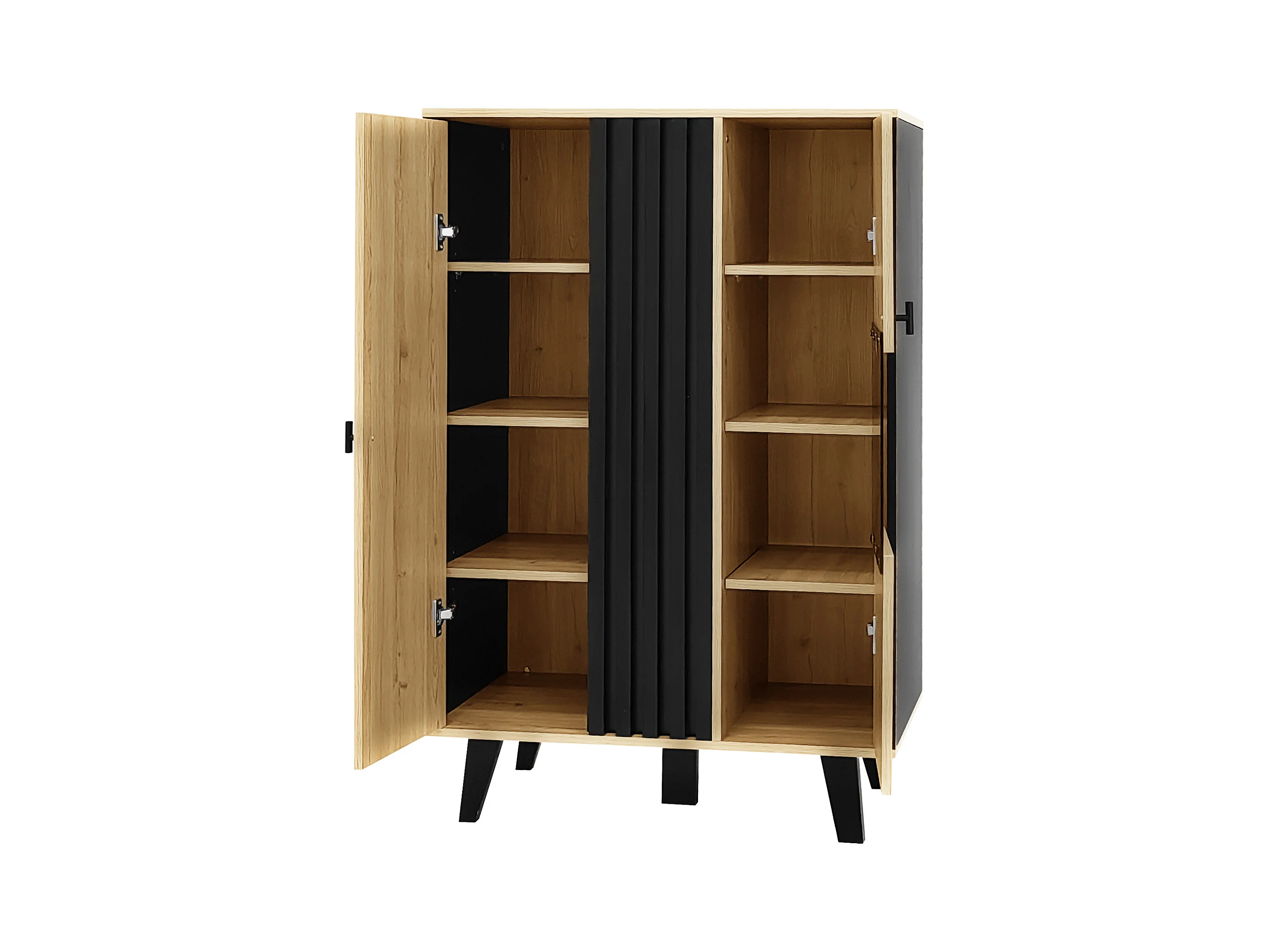 Zwart en houten dressoir 80x40x120cm met 2 deuren en LED-verlichting