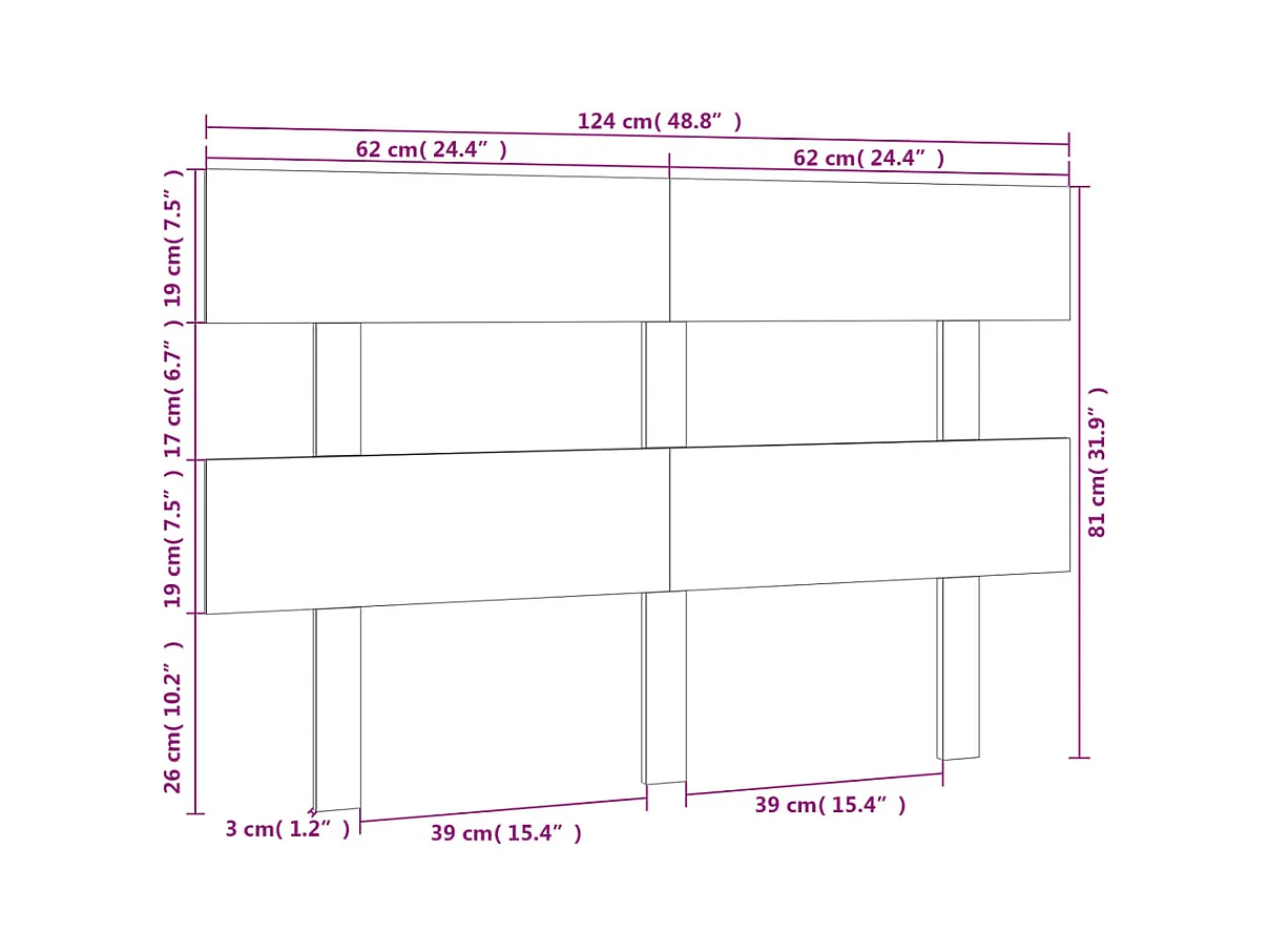Zwart hoofdbord 124x3x81 cm Massief grenenhout