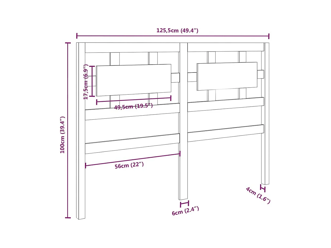 Zwart hoofdbord 125,5x4x100 cm Massief grenenhout