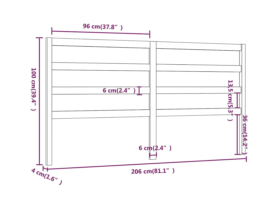 Zwart hoofdbord 206x4x100 cm Massief grenenhout