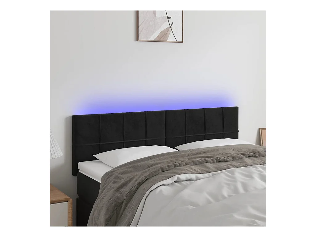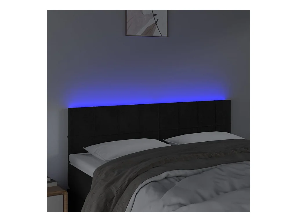 Zwart LED hoofdbord 144x5x78/88 cm Fluweel