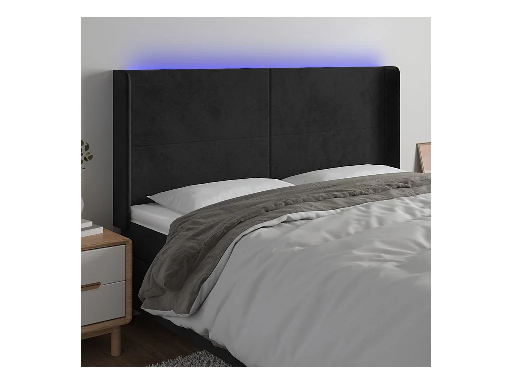 Zwart LED hoofdbord 183x16x118/128 cm Fluweel