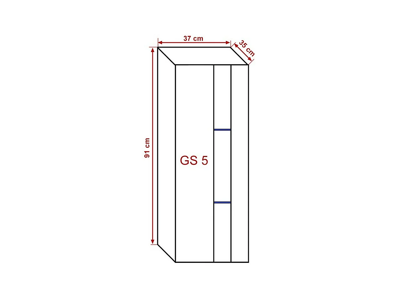 Zwarte woonkamerkast uit de CEPTO-collectie, 37x91cm, 1 deur, 2 planken, 2 vakken.