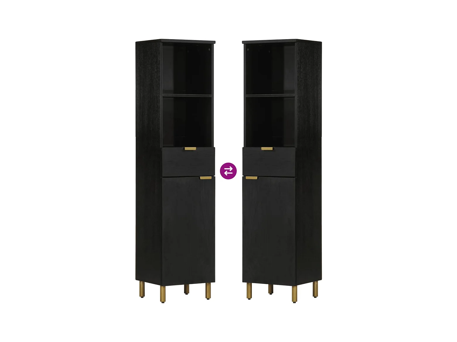 Zwarte badkamerkast 38x33x160 cm massief mangohout