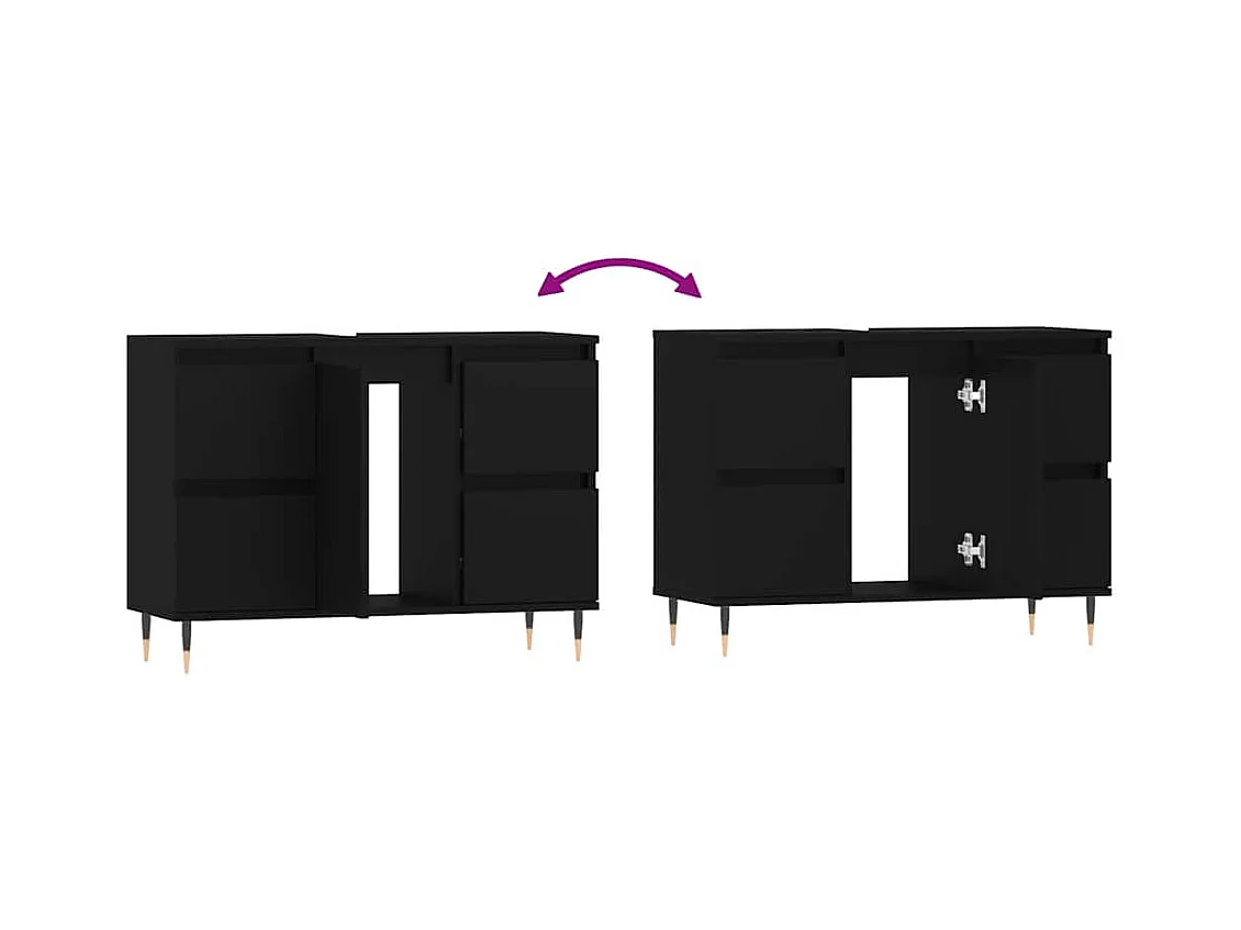 Zwarte badkamerkast 80x33x60 cm van bewerkt hout