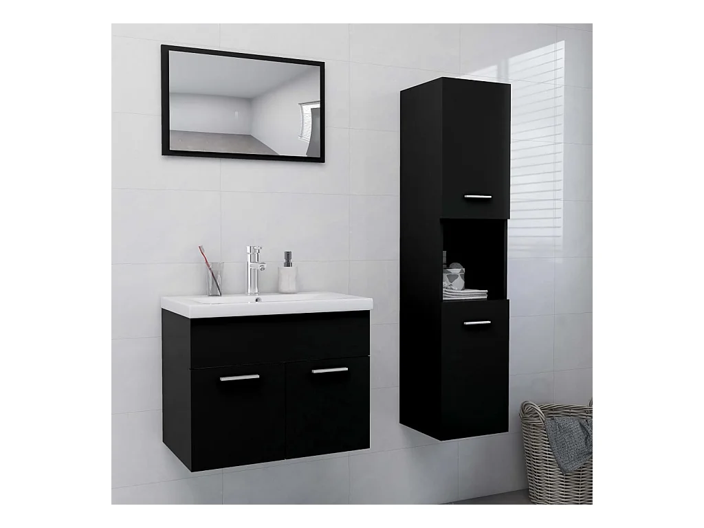 Badkamermeubelset Wandmontage 3-delig Zwart Eiken