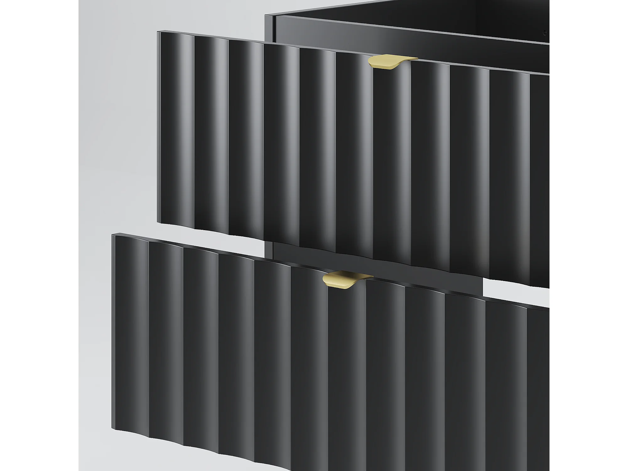 Zwarte badkamerset 140 cm Kast met blad Rek Wasbak Kolom Geribbelde fronten Arcos