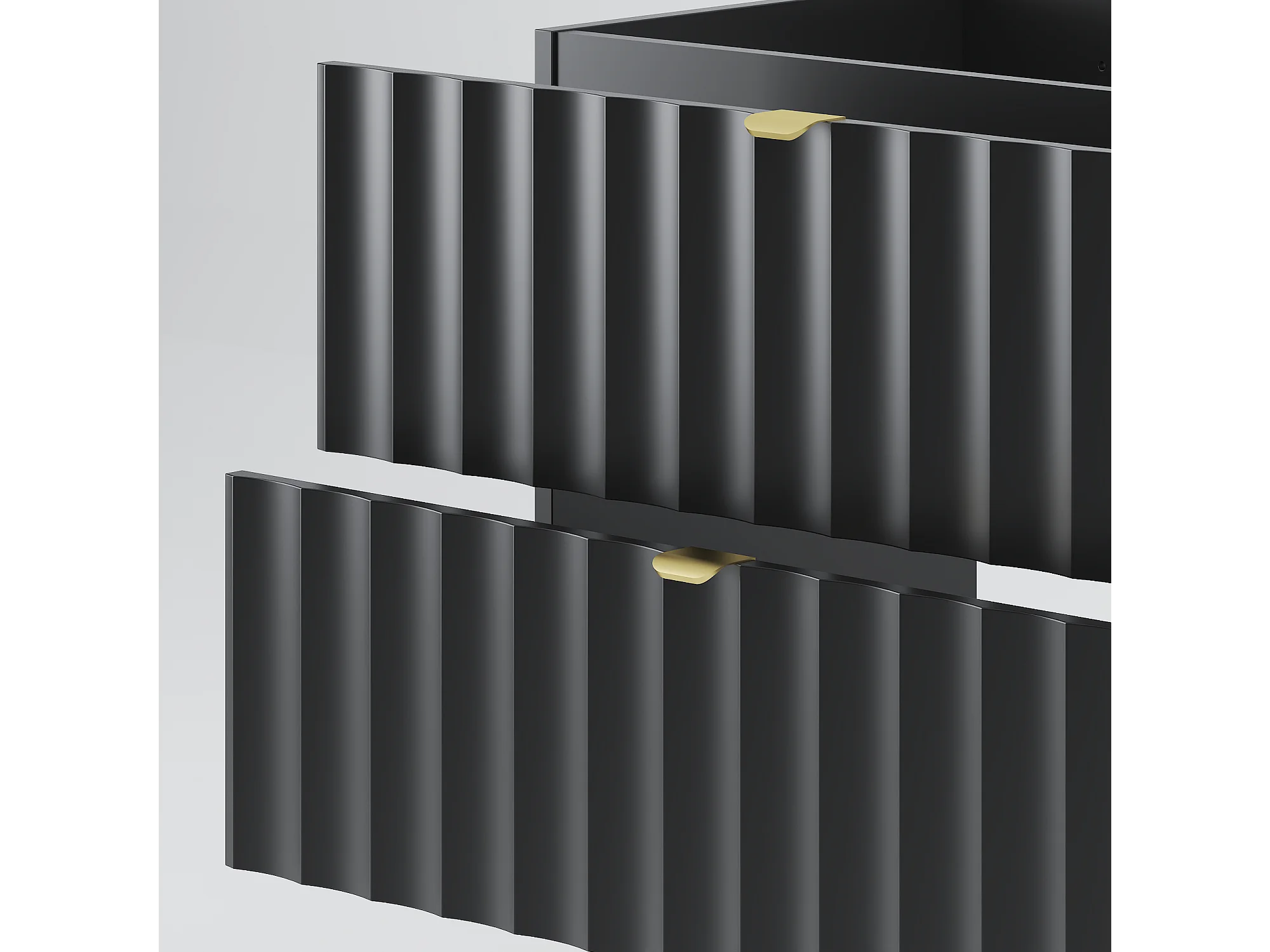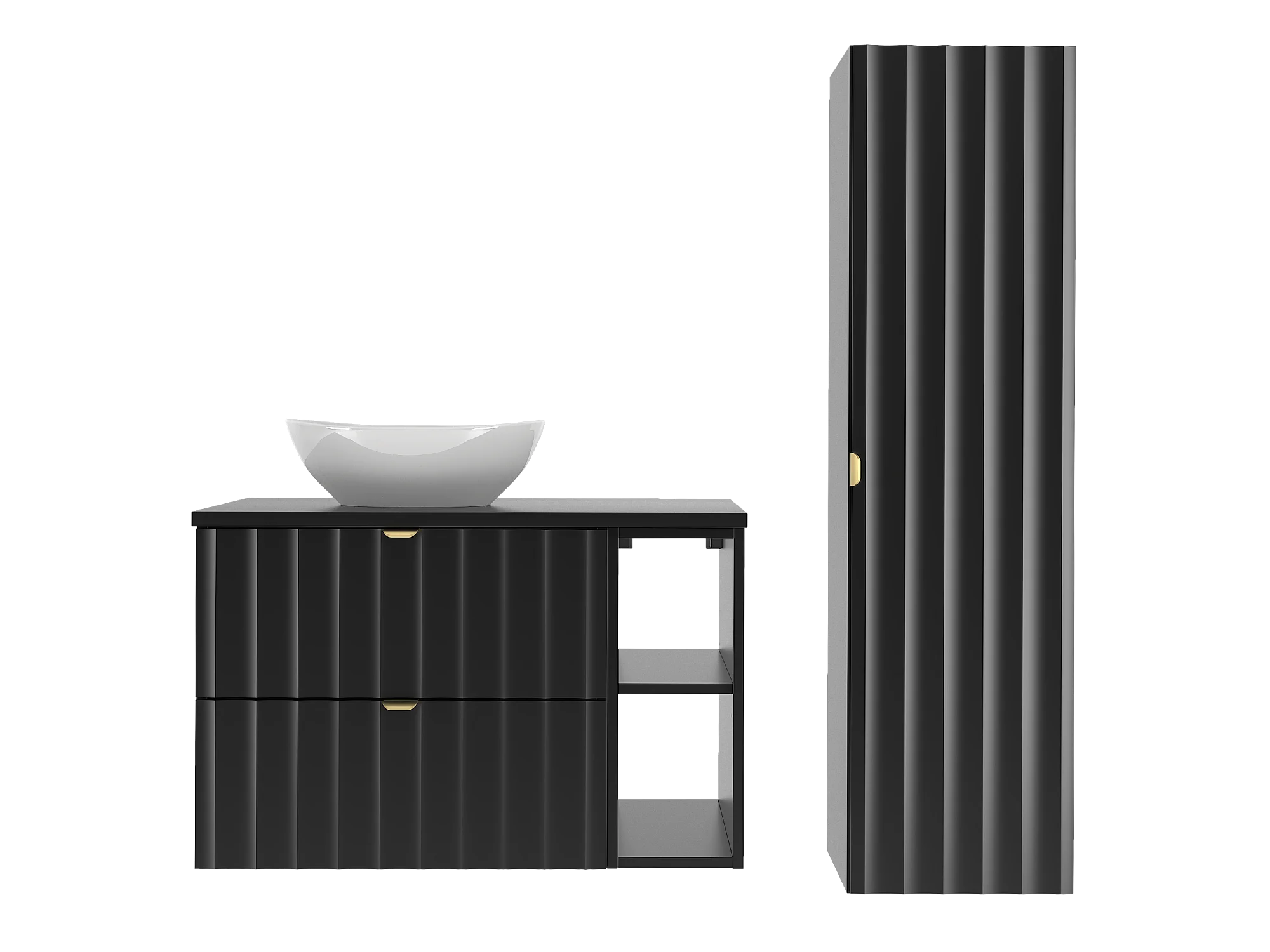 Zwarte badkamerset 80 cm Kast met blad Rek Wastafel Kolom Geribbelde fronten Arcos