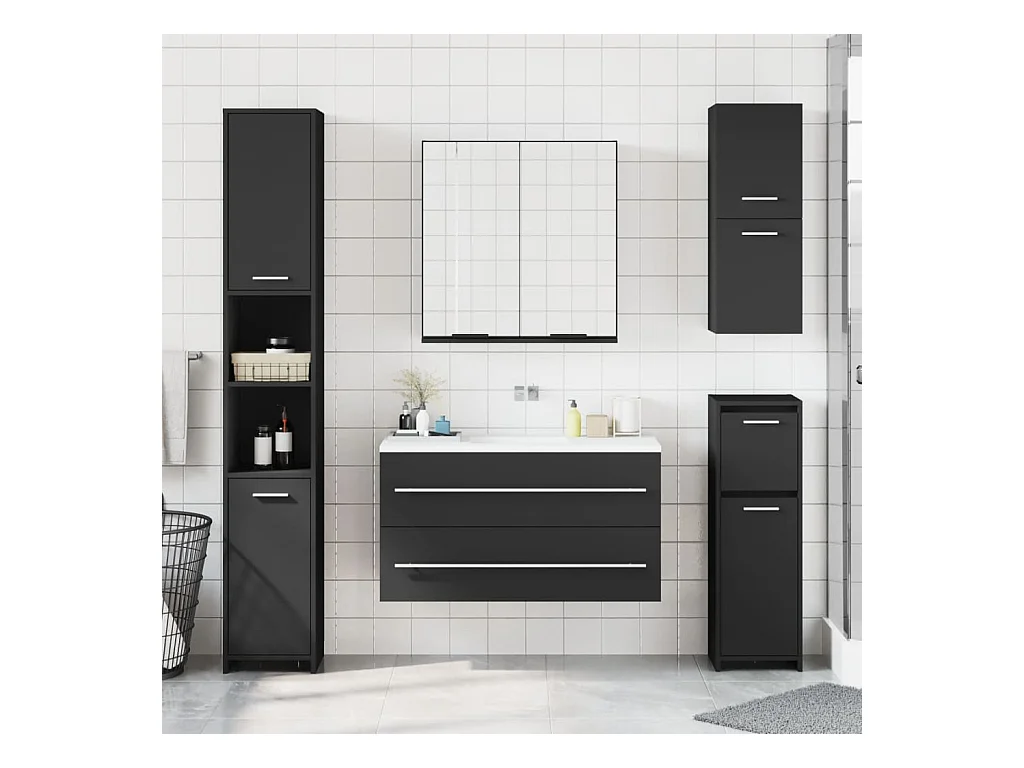 Badkamermeubel met spiegel in zwart eikenhout 90 x 11 x 45 cm Technisch hout
