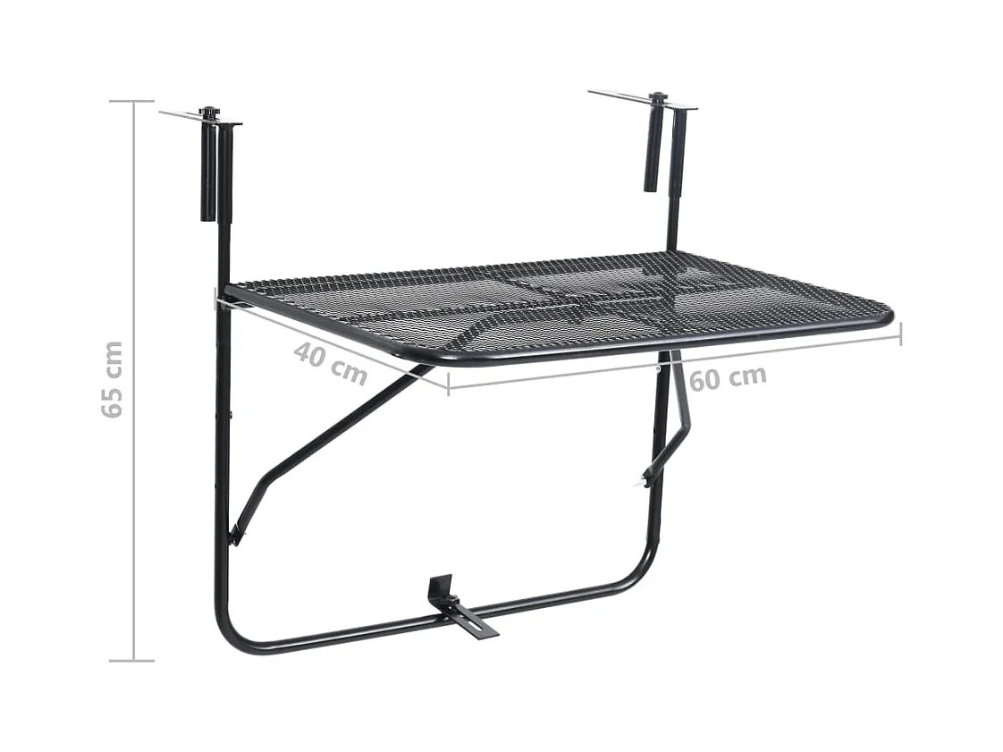 Zwarte hangende balkontafel 60 x 39 x 65 cm staal