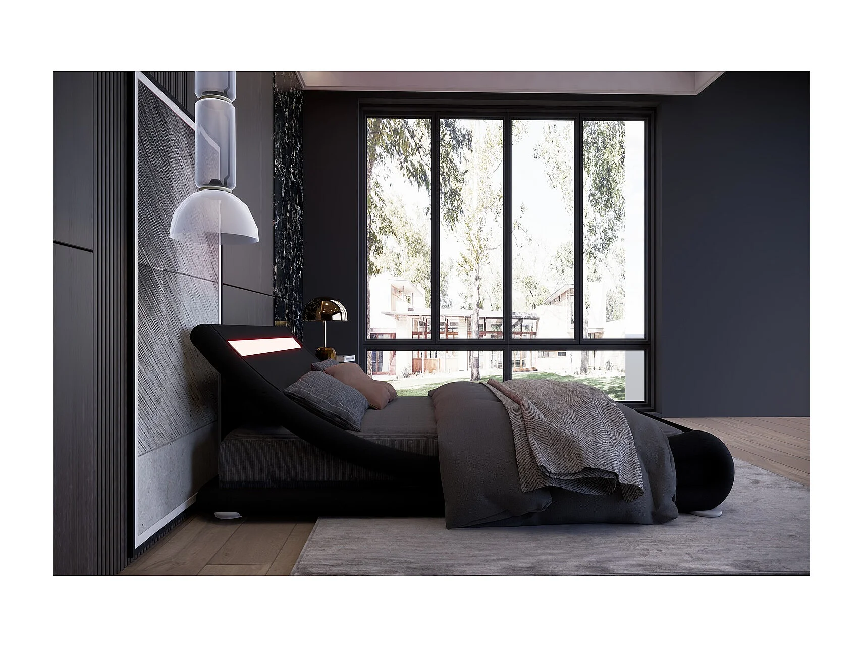 Zwarte bedframe PU met geïntegreerde LED-verlichting 140x190 cm SEATTLE Modern en Elegant Design