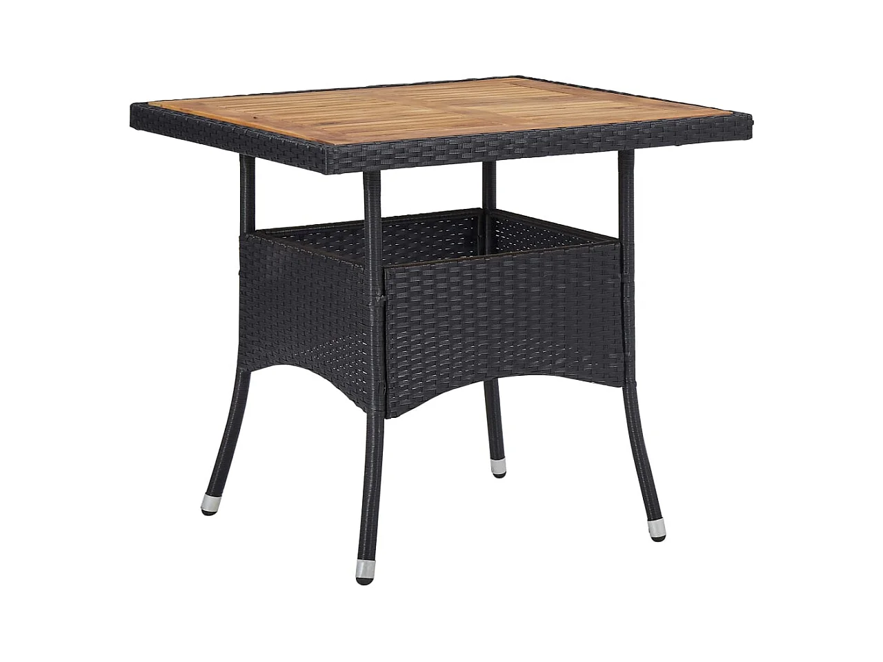 Zwarte tuintafel 80x80x71 cm gevlochten hars en acaciahout
