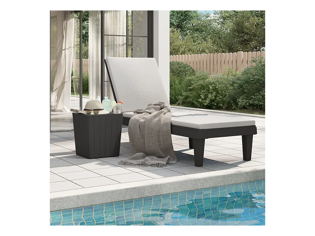 Ligstoelen met tafel 3 stuks Zwart en antraciet 197 x 54 x 86 cm