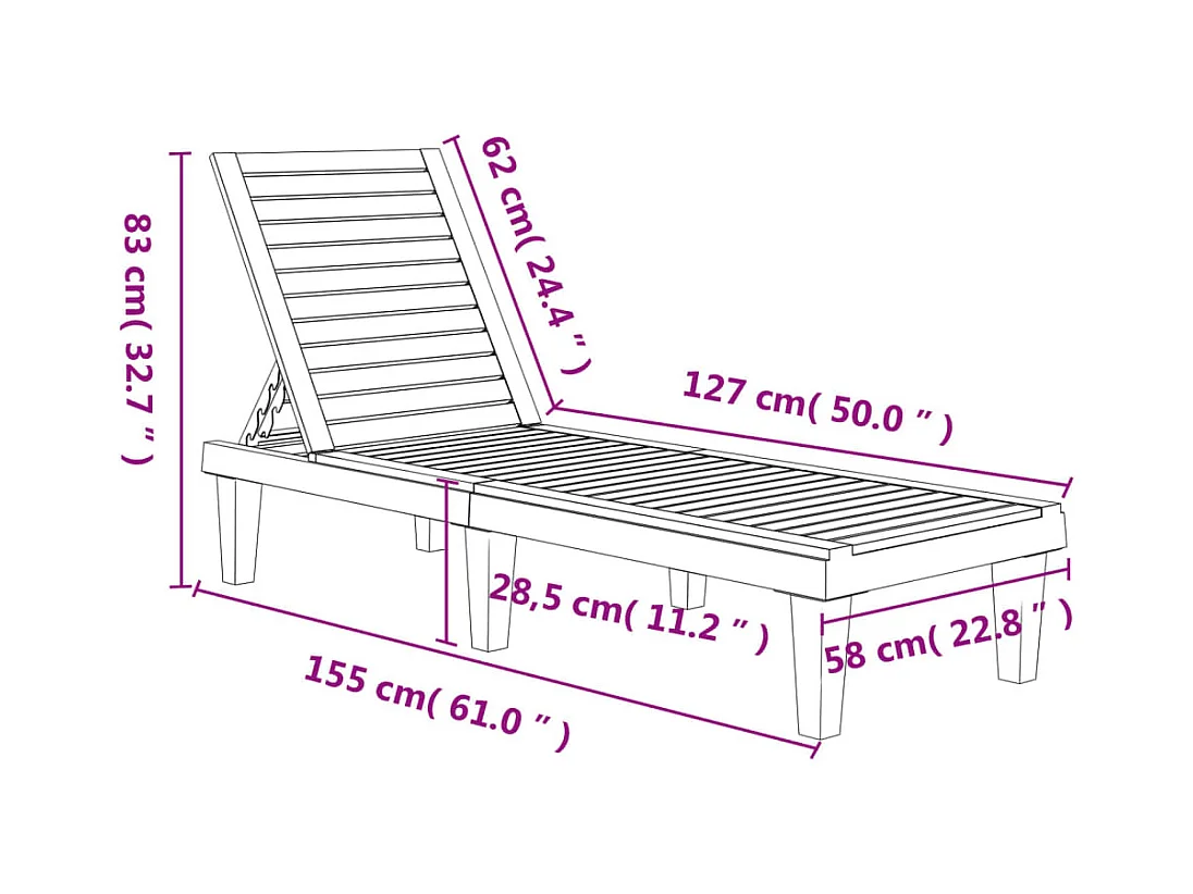 Zwarte chaise longue 155x58x83 cm polypropyleen
