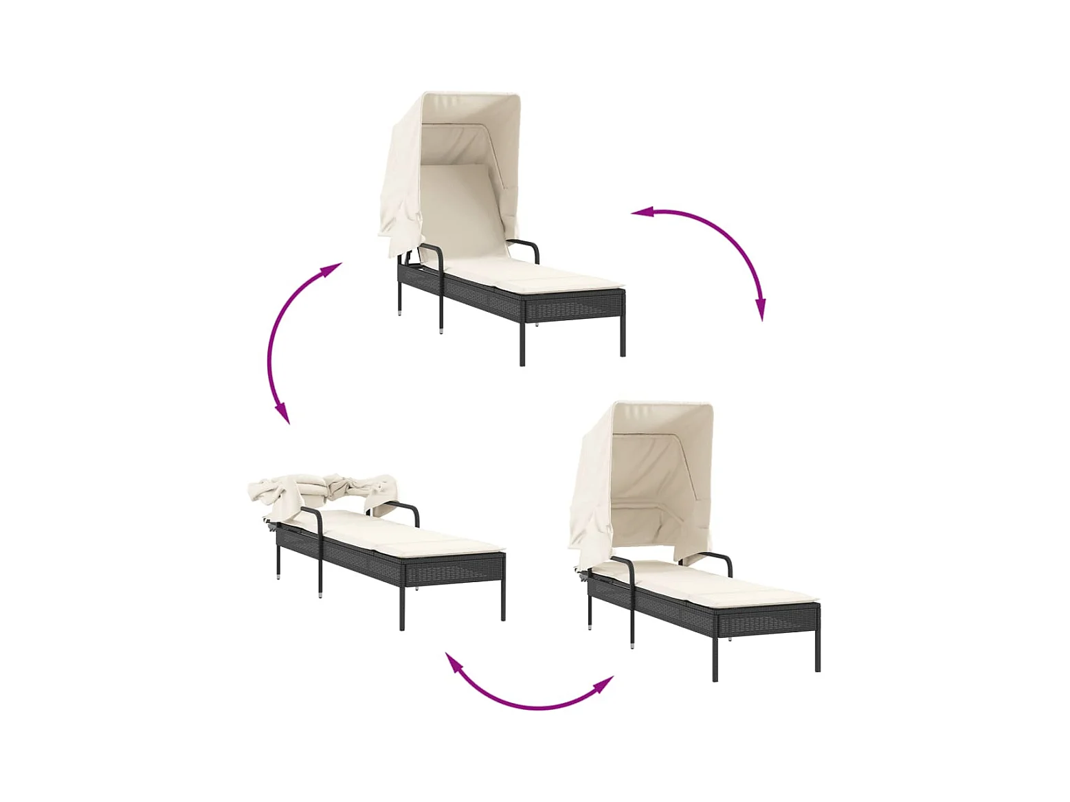 Zwarte chaise longue van kunstharsriet met luifel en tafel