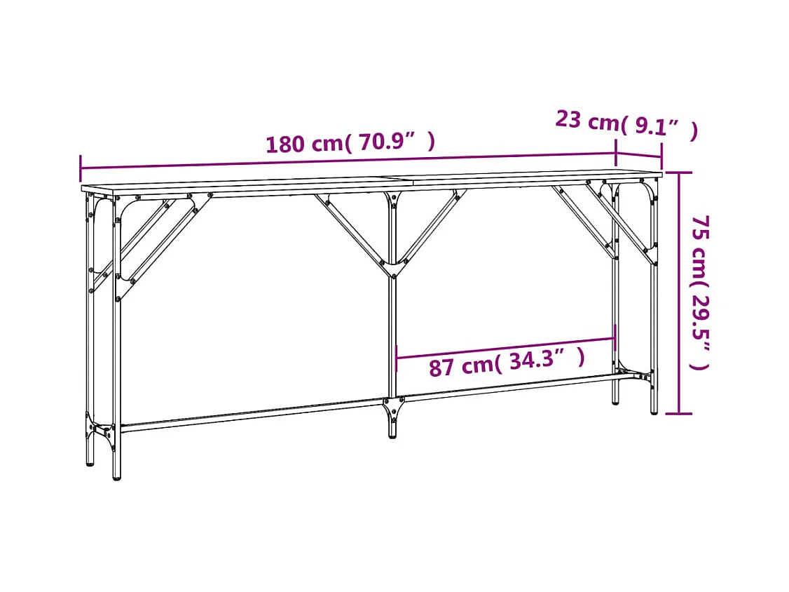 Zwarte consoletafel 180x23x75 cm bewerkt hout