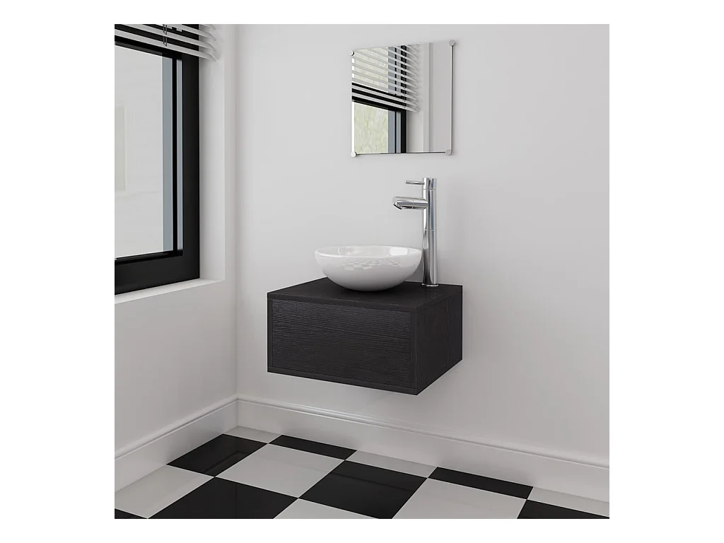 Zwarte spaanplaat badkamermeubelset