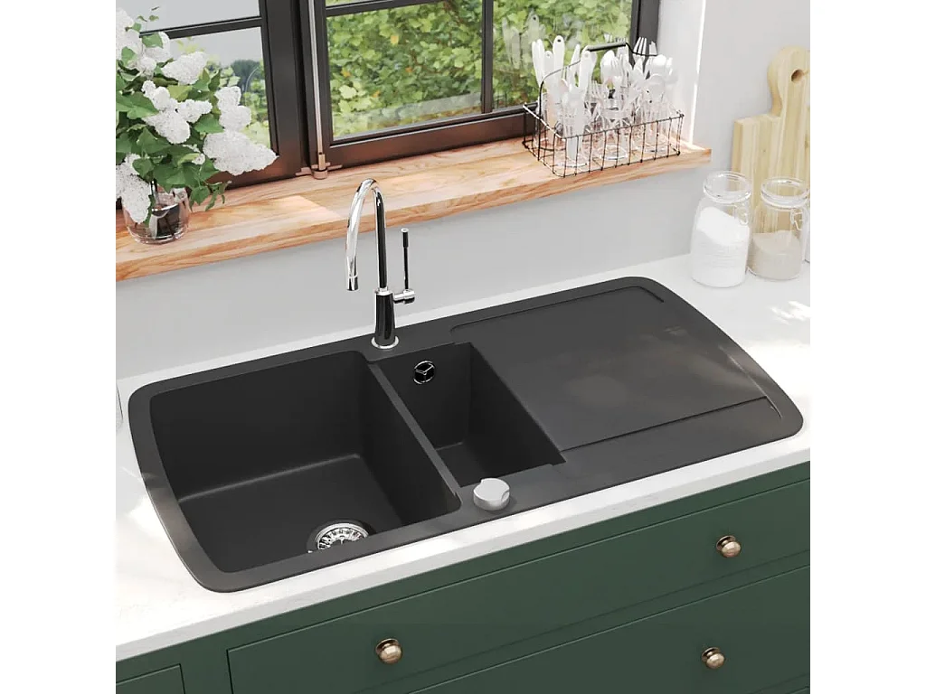 Granieten keukenspoelbak met enkele kom, rond, zwart