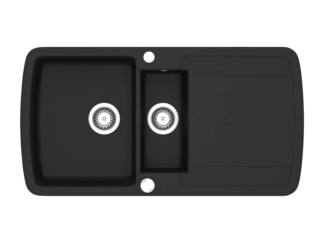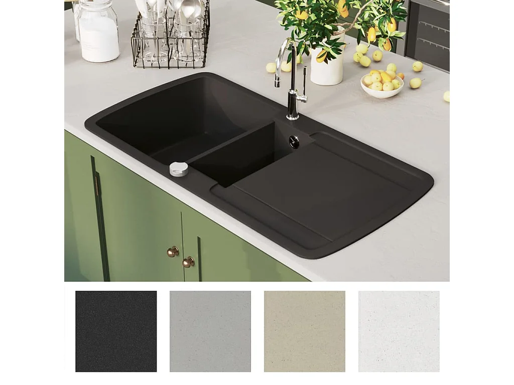 Zwarte granieten dubbele onderbouwkeukenspoelbak