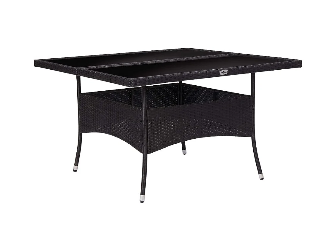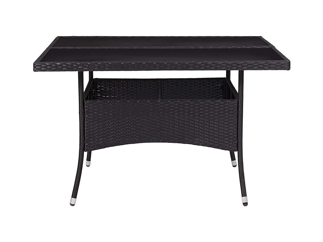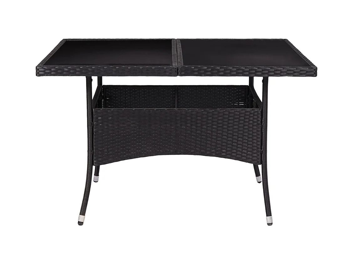 Zwarte eettafel voor buiten, geweven hars en glas